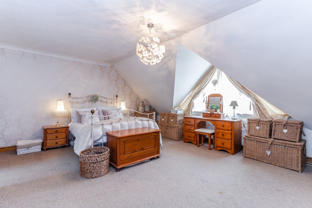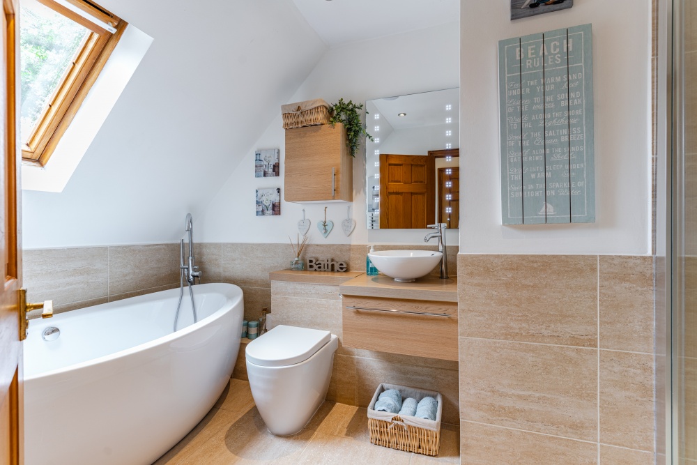 On the first floor the master bedroom has a newly installed en suite bathroom. The guest bedroom also has an en suite shower room and the further four bedrooms are served by the family bathroom, which has also been refitted.
