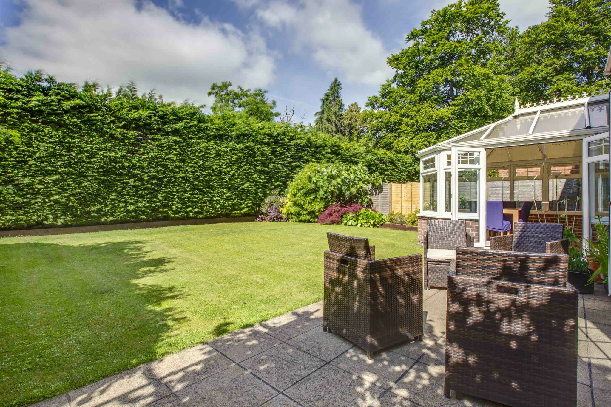 Step outside into the south westerly facing patio/seating area that transitions gracefully onto a level lawn, enveloped by mature shrubs, hedging, and fencing, the perfect setting for al-fresco dining and entertaining guests. A rare gem waiting to be discovered, this property embodies the essence of modern living whilst providing a haven to call home.
