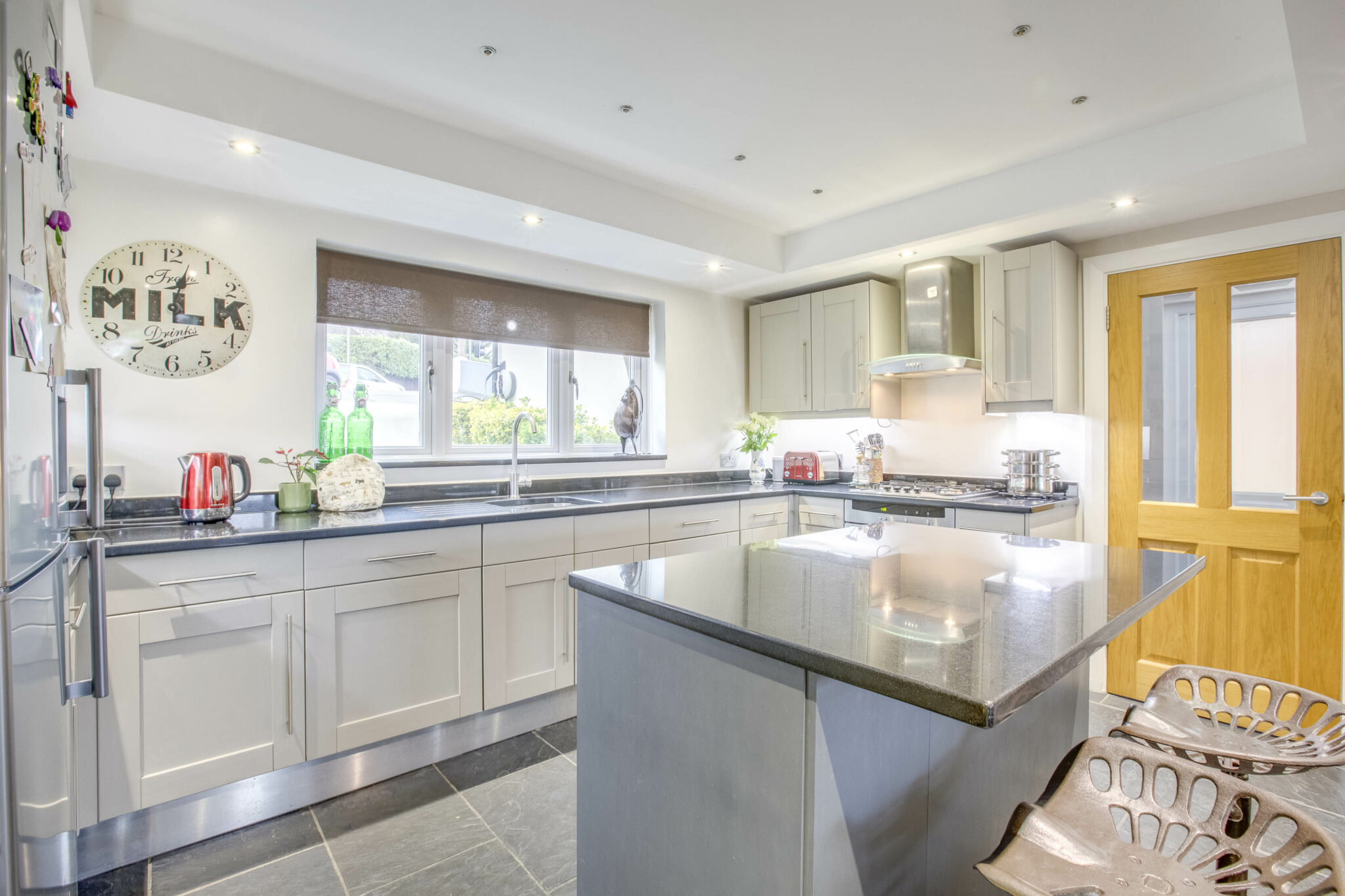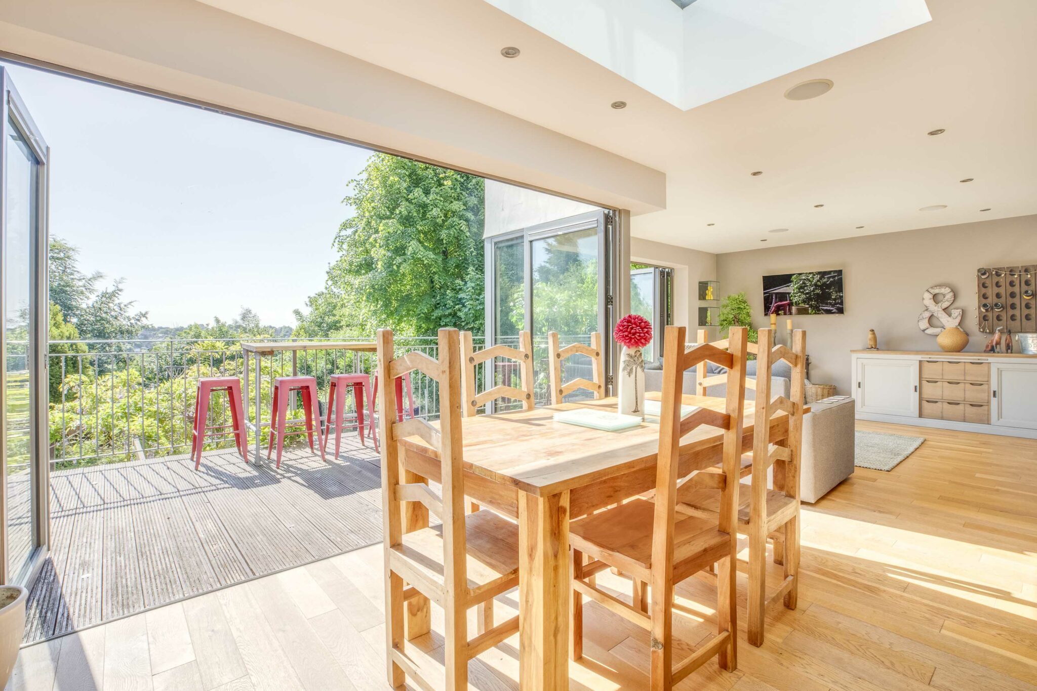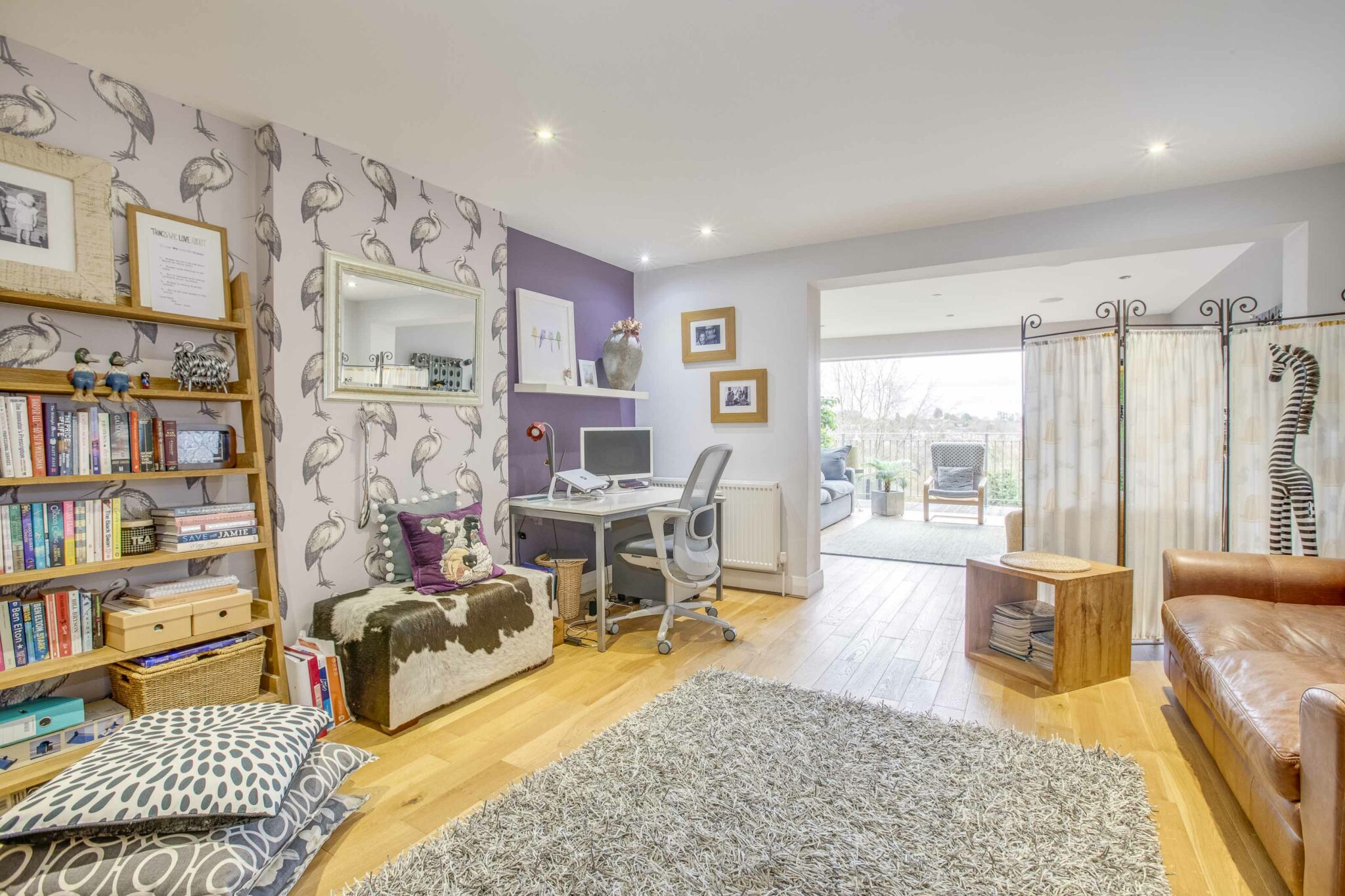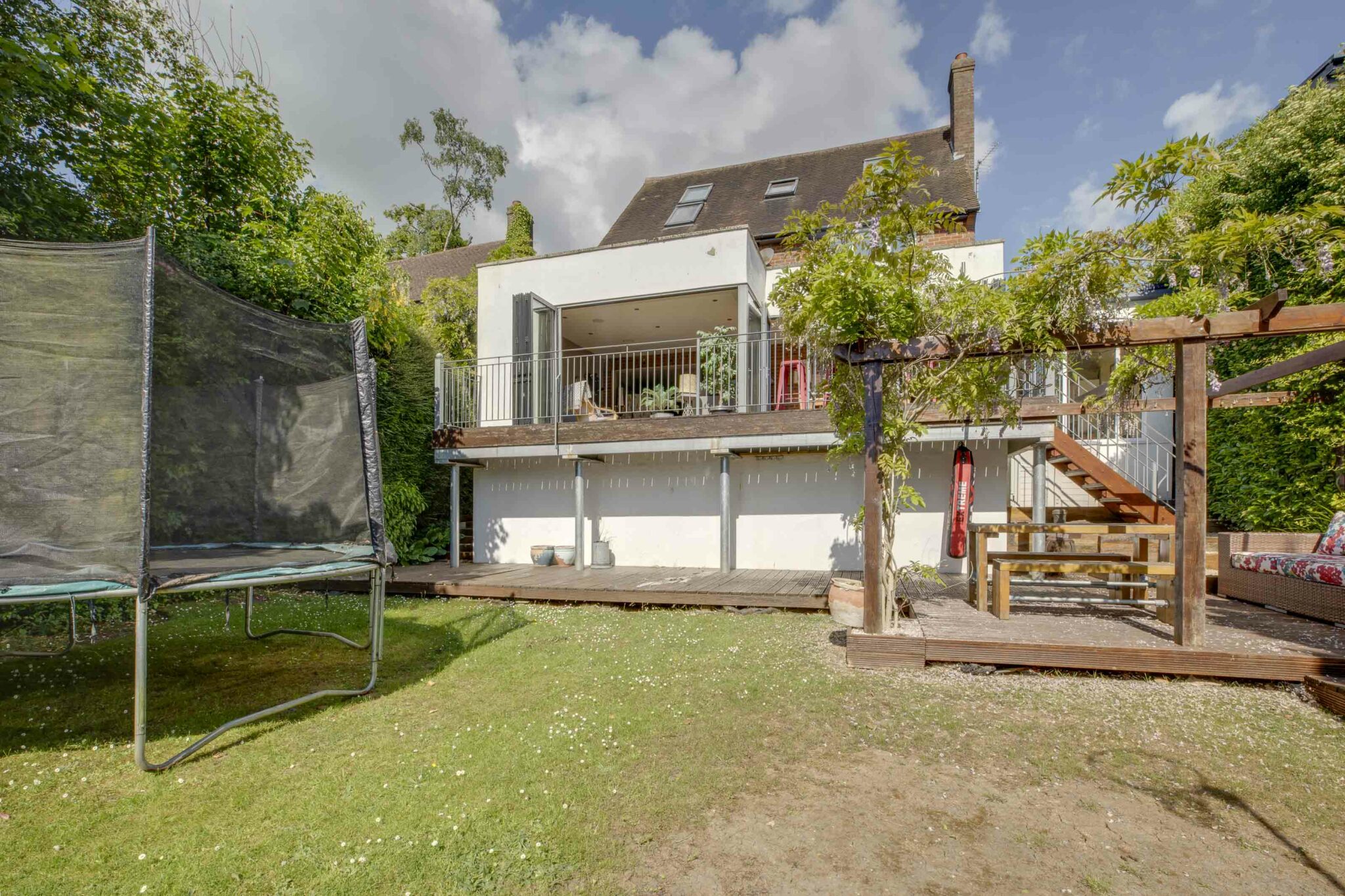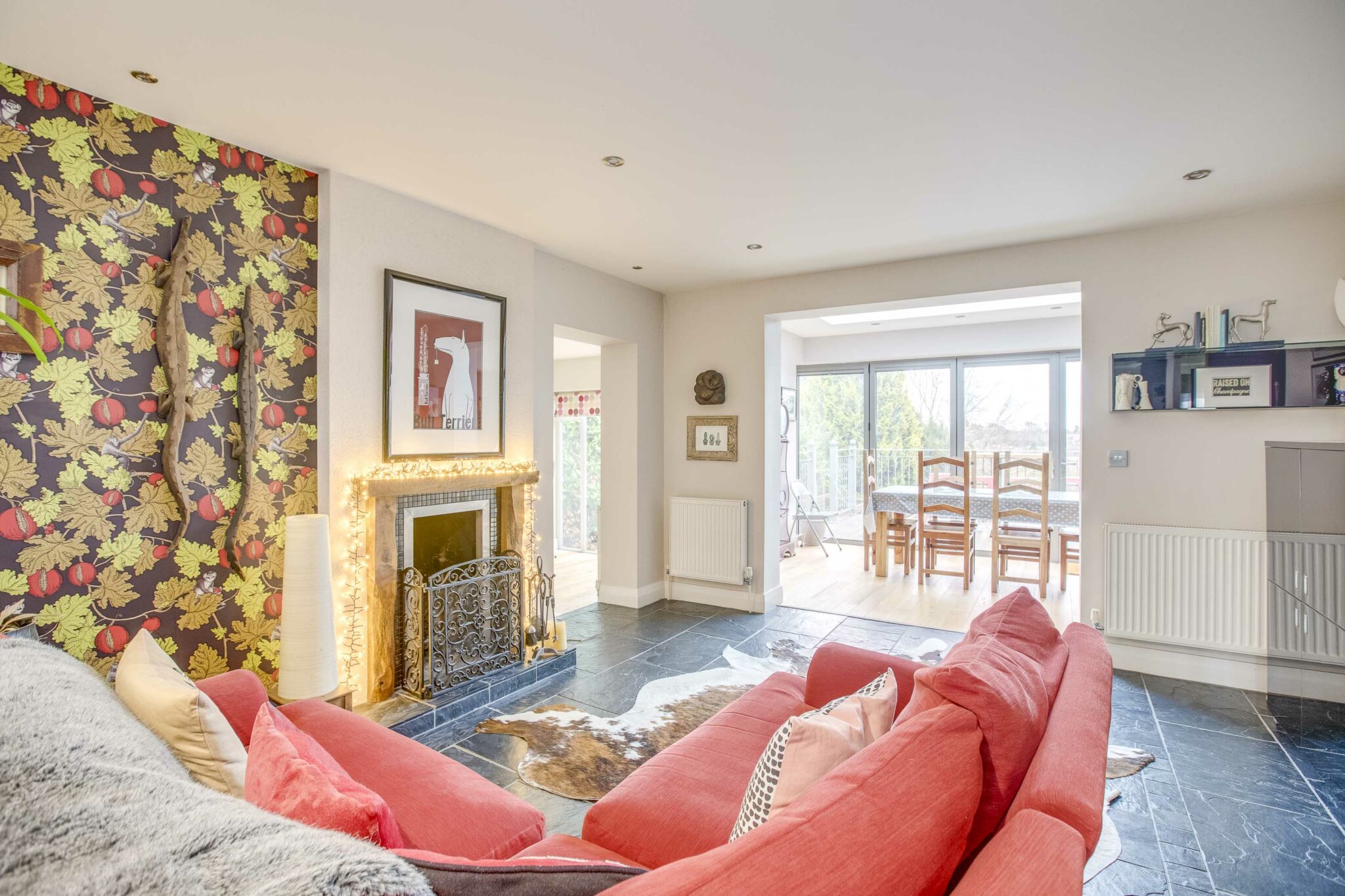 A deceptive five-bedroom, three-bathroom detached house blending functionality with contemporary elegance is now available for discerning buyers. This stunning property is situated across the road from the esteemed Royal Grammar School and within easy access to excellent public transport links, boasts meticulous attention to detail with top-quality fittings throughout. The free-flowing ground floor layout offers a plethora of reception spaces, ideal for entertaining, with bifold doors opening to a wide balcony overlooking the landscaped mature gardens. The inviting entrance hall gives way to a well-equipped kitchen/breakfast/dining area complete with a snug and fireplace, complemented by underfloor heating and bifold doors leading to the balcony. Additionally, a separate utility room and playroom with internal access to the garage, along with a family room and sitting room also featuring bifold doors, provide ample space for various activities.