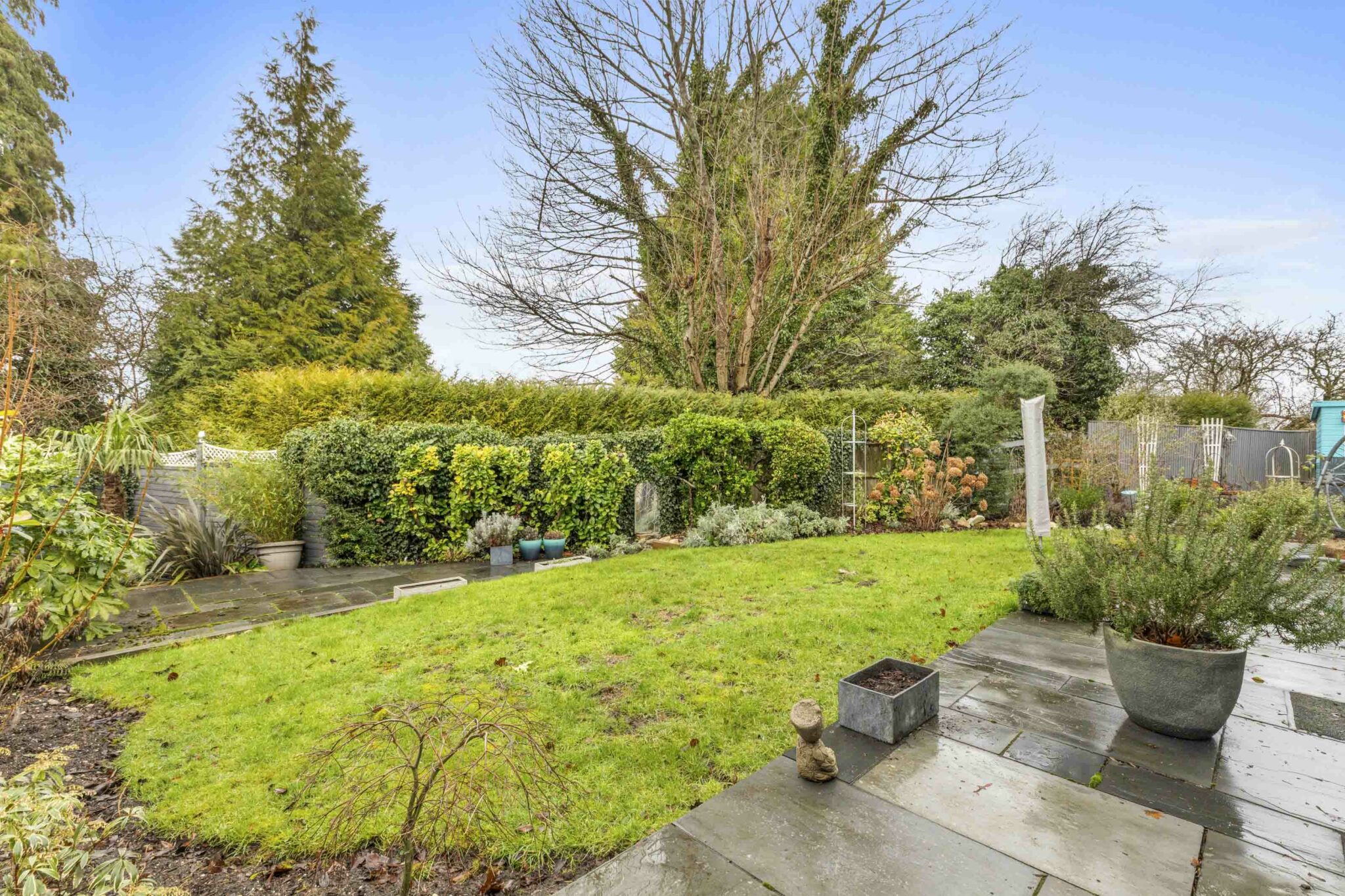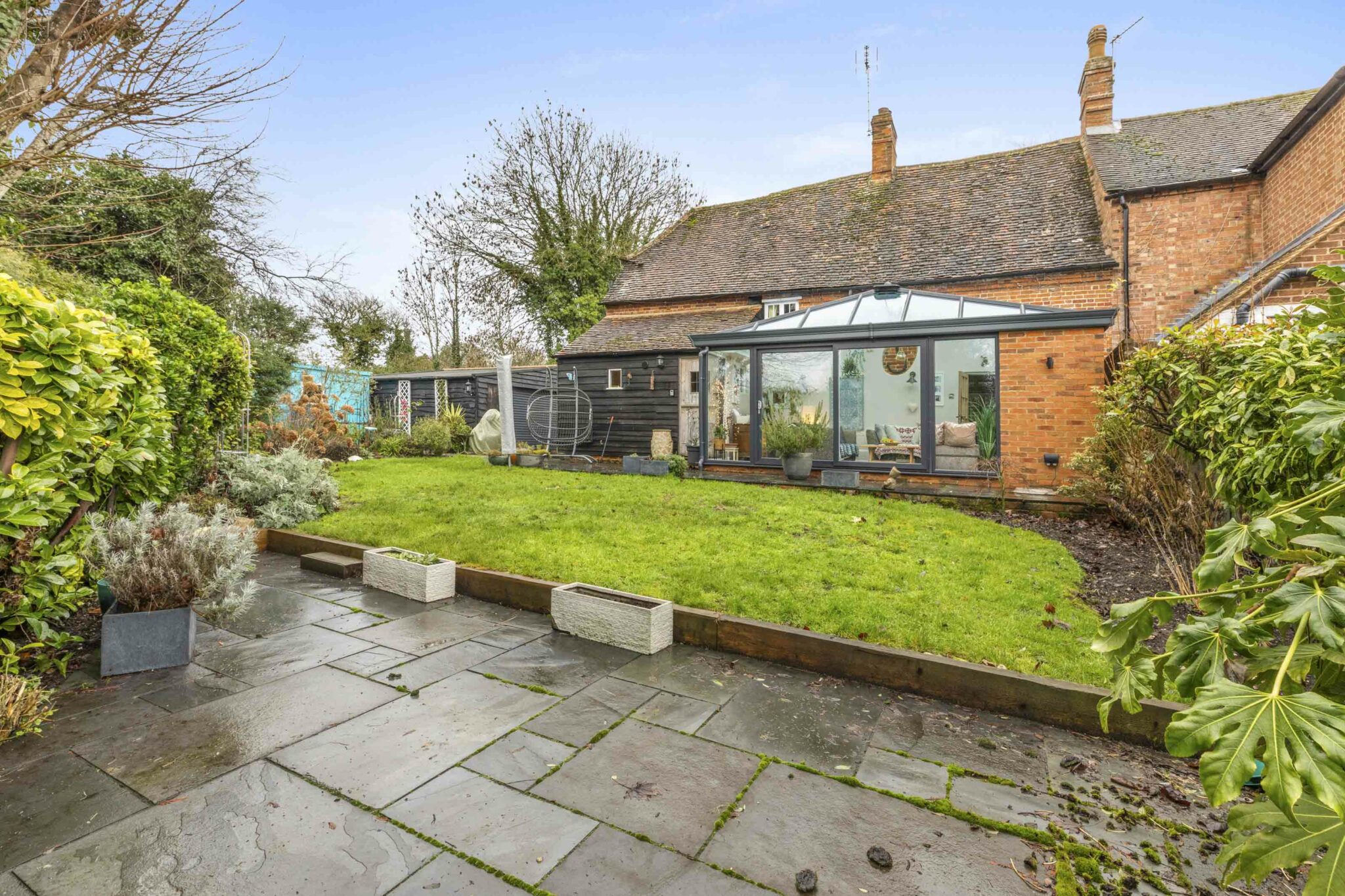 The private west-facing garden is a real highlight, enjoying afternoon and evening sun and offering a full-width patio, lawn, well stocked borders, plus a two sheds and greenhouse ideal for keen gardeners or relaxed outdoor entertaining.