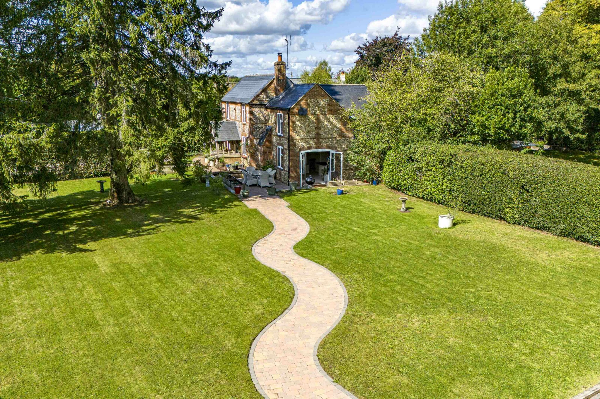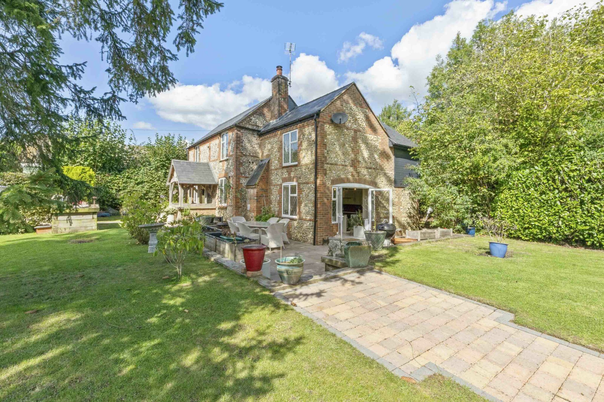 Nestled towards the end of a private drive, this charming three bedroom detached cottage exudes character and tranquillity. The picturesque brick and flint exterior, sympathetically extended, sits on a generous plot of 0.246 of an acre, offering a serene retreat close to local amenities, top-rated schools, and excellent transport links.