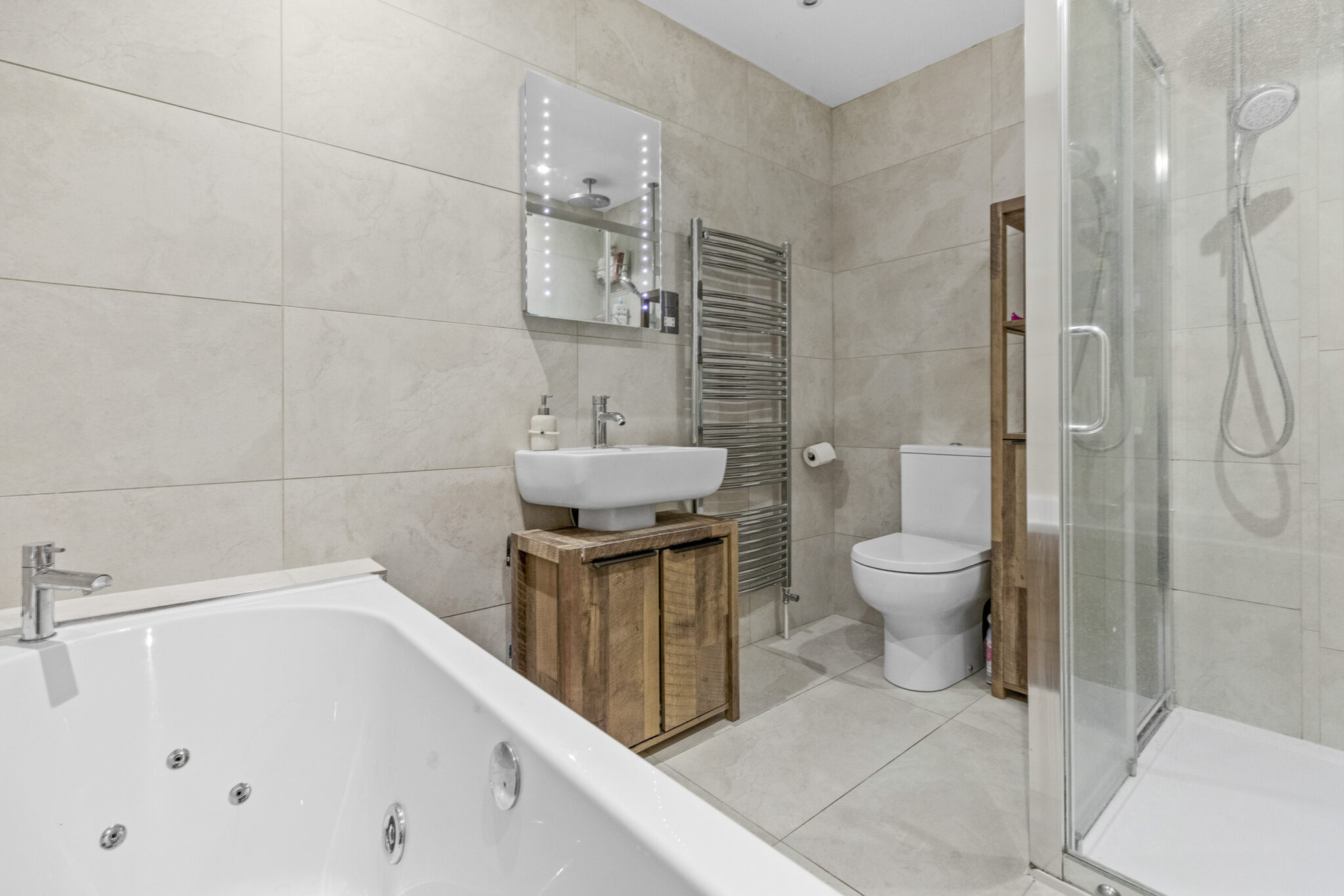 On the first floor the main bedroom has a walk in wardrobe and a four piece ensuite bathroom. There are two further double bedrooms on this floor both with walk in wardrobes and a family bathroom. On the second floor there are two further bedrooms, one of which has a dressing/play area.