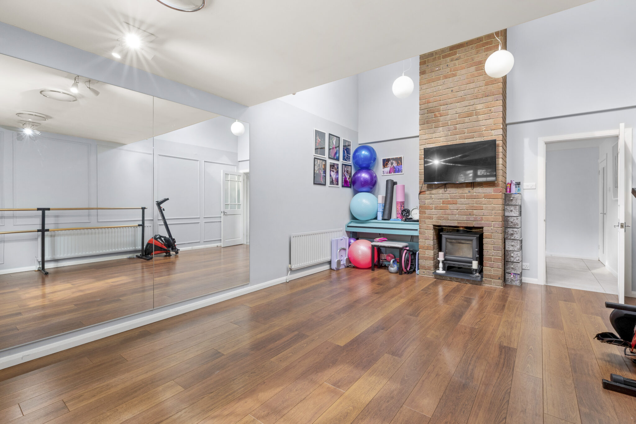 This exceptionally versatile family home has so much to offer with phenomenal ground floor living space and five generous bedrooms. The property is well presented throughout and has a lovely contemporary feel. There is a comfortable sitting room and a large study which opens onto the garden. The well equipped kitchen opens into the dining area which in turn has double doors connecting with the large enclosed private terrace. Off the kitchen is the essential laundry/utility room. The dance studio offers a great further dynamic and could also be used as family/playroom.