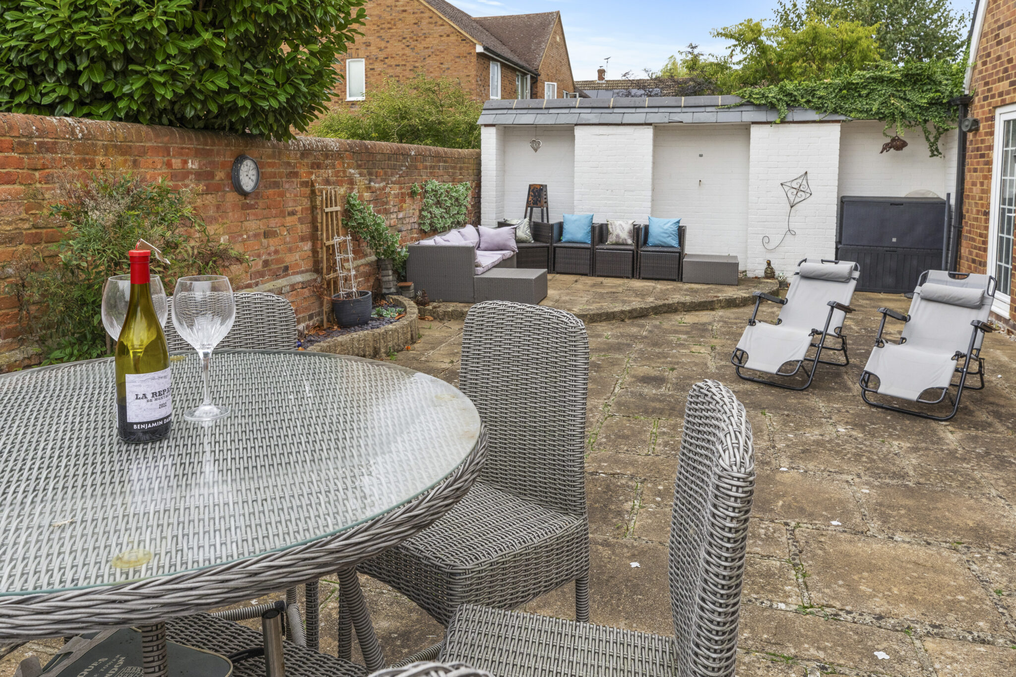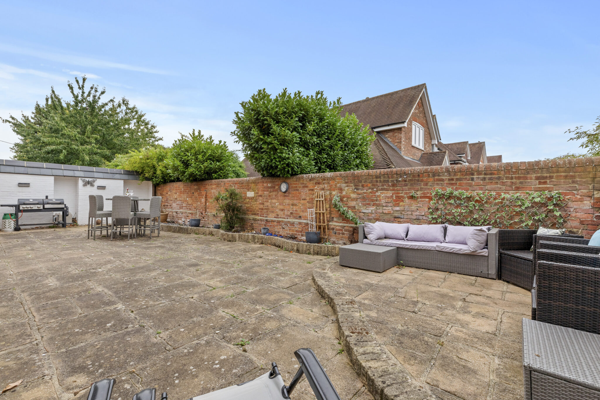 Outside the property is approached via an electric gate, which opens onto the driveway with plenty of parking and turning space. The garden lies on two sides of the house with areas of lawn and screened from neighbours. The large sheltered courtyard is a wonderful space for outside entertaining and is completely enclosed.