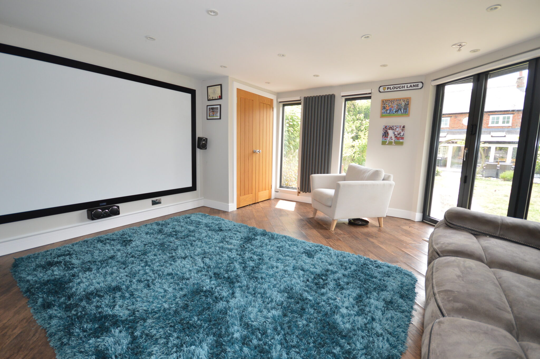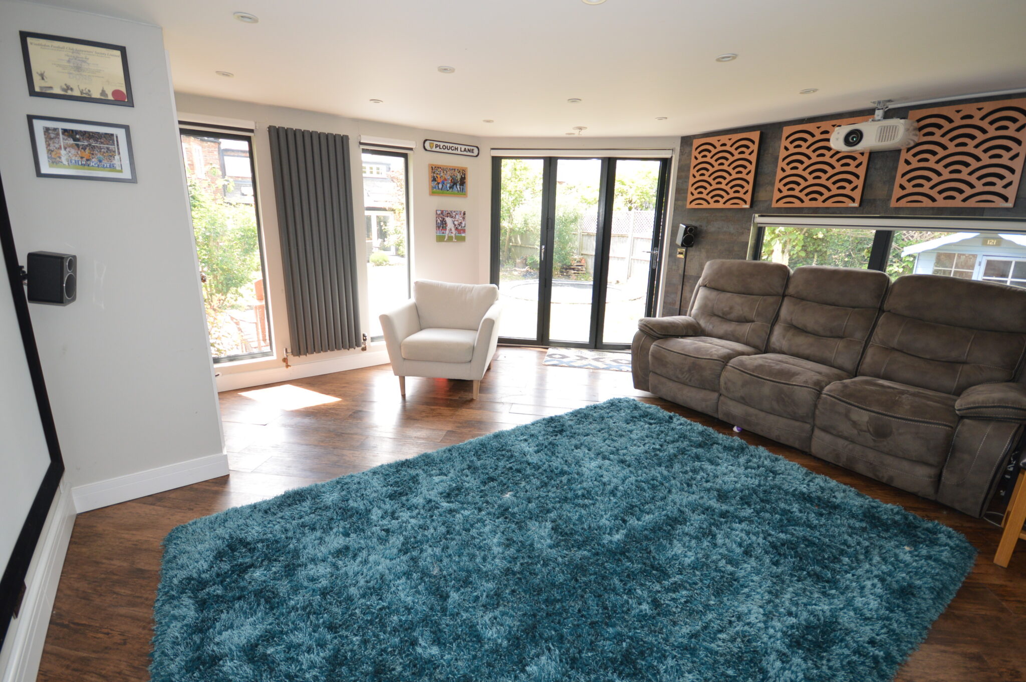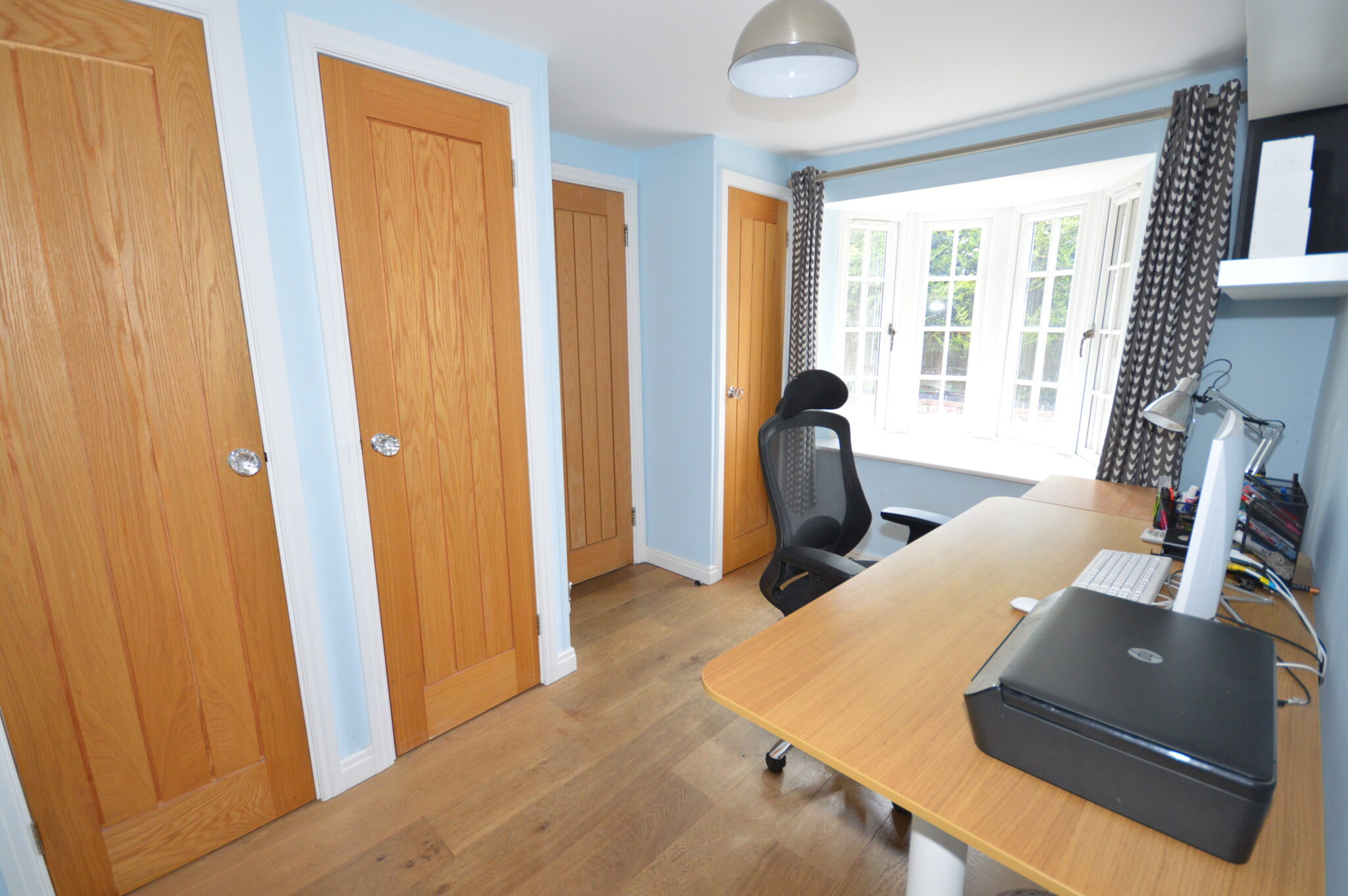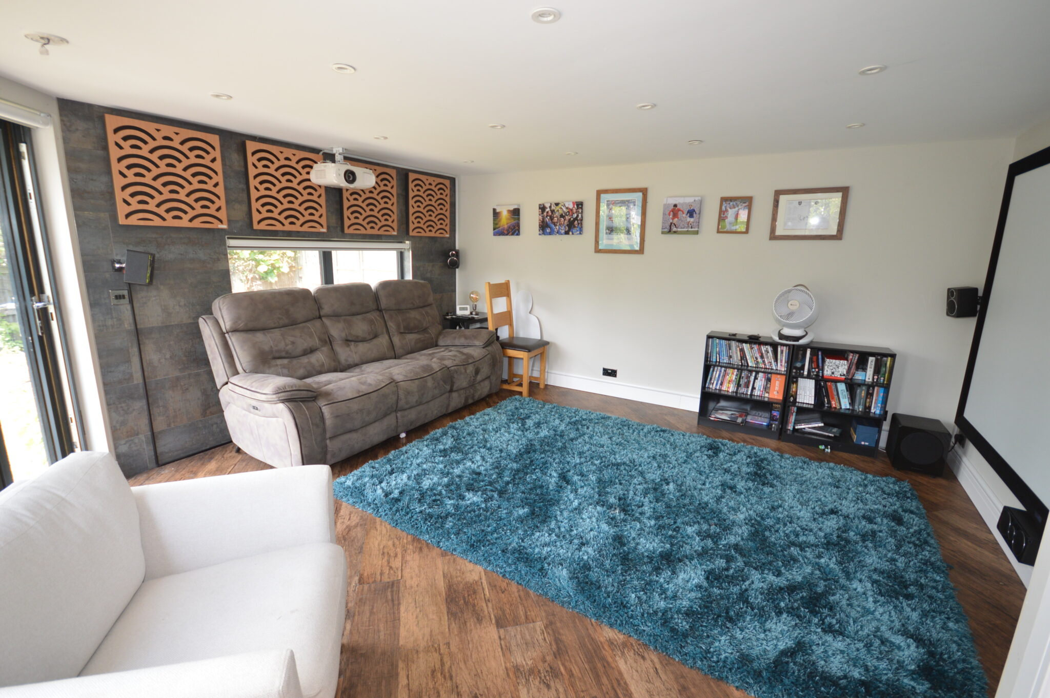 This Cedar clad fully insulated pod can be used as a home office, studio or a den. There is full mains drainage, water and gas connected and heating is via it’s own combination boiler so also benefits from constant hot water. Full up to date wiring and Cat 6 cabling for fast internet and TV streaming. A kitchenette has also been built in, hidden from view, where a drinks fridge can be installed and also has storage and washing up sink. Bi-fold doors open nicely to the garden giving the inside outside appeal and with the large picture windows ample natural light.