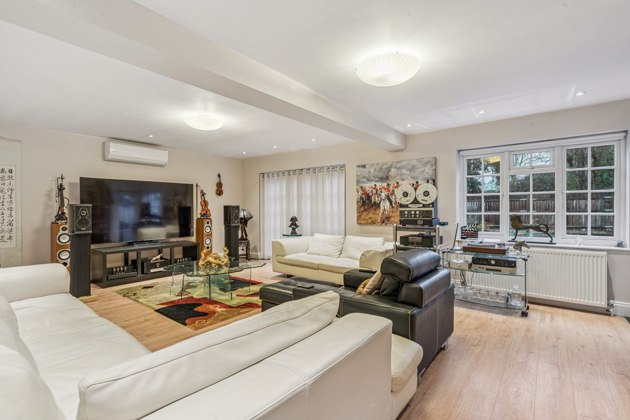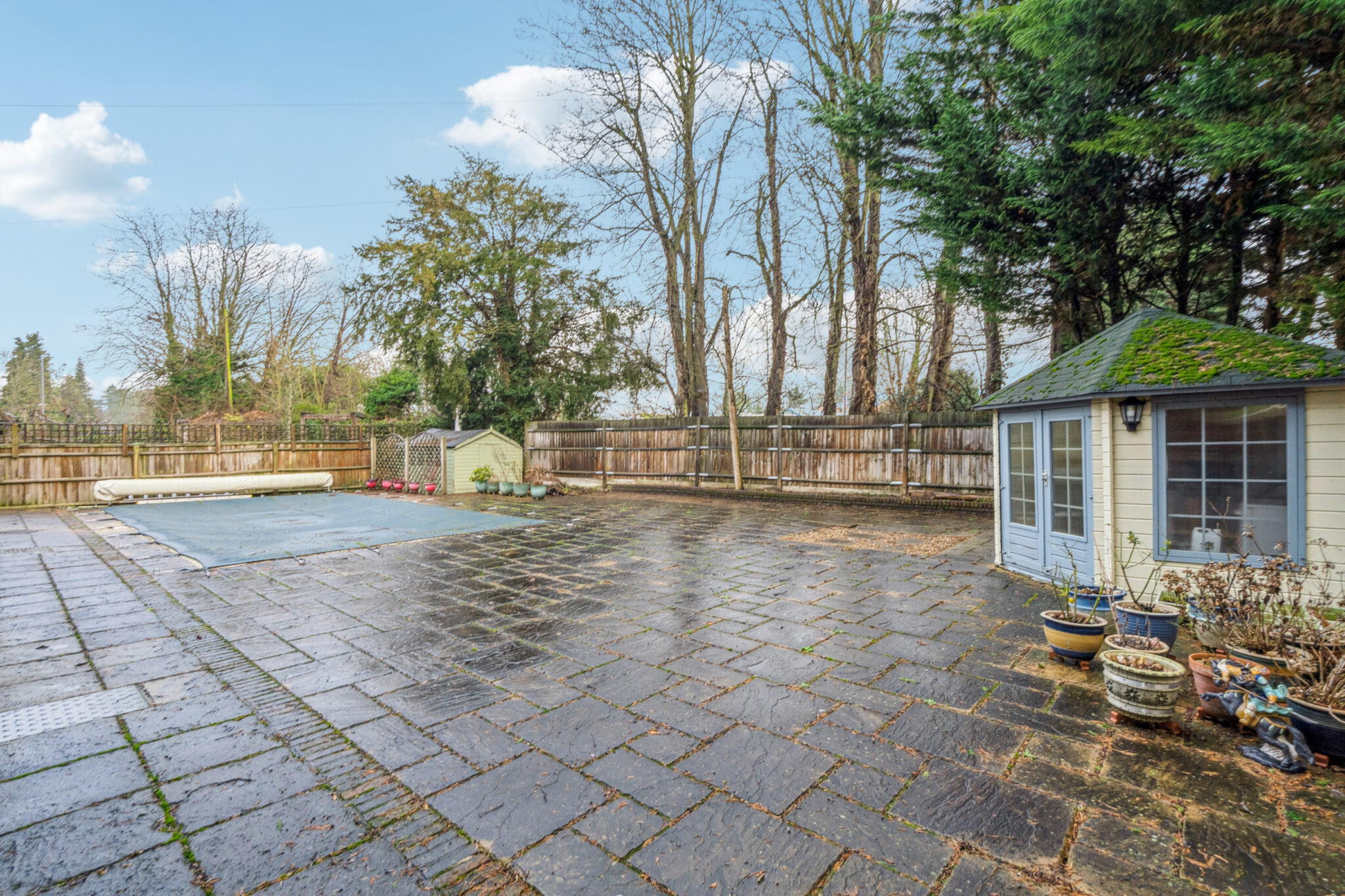 The first floor is seamlessly connected by the light and spacious galleried landing. All five bedrooms are doubles with the main boasting it’s own dressing room and en-suite. There is a further bathroom and separate shower room. The rear garden is both a good size and private, fully paved for low maintenance and to best enjoy the beautiful and large heated swimming pool. Further features and benefits are air conditioning, underfloor heating, gas central heating and a large shingle driveway providing secure parking for several vehicles.