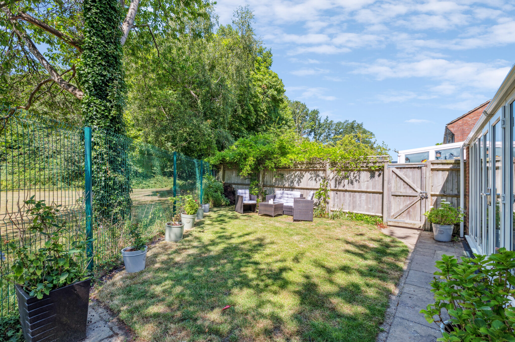 Outside, a south-facing garden provides the perfect space for outdoor dining or unwinding in the sun. A double garage offers secure parking and storage.