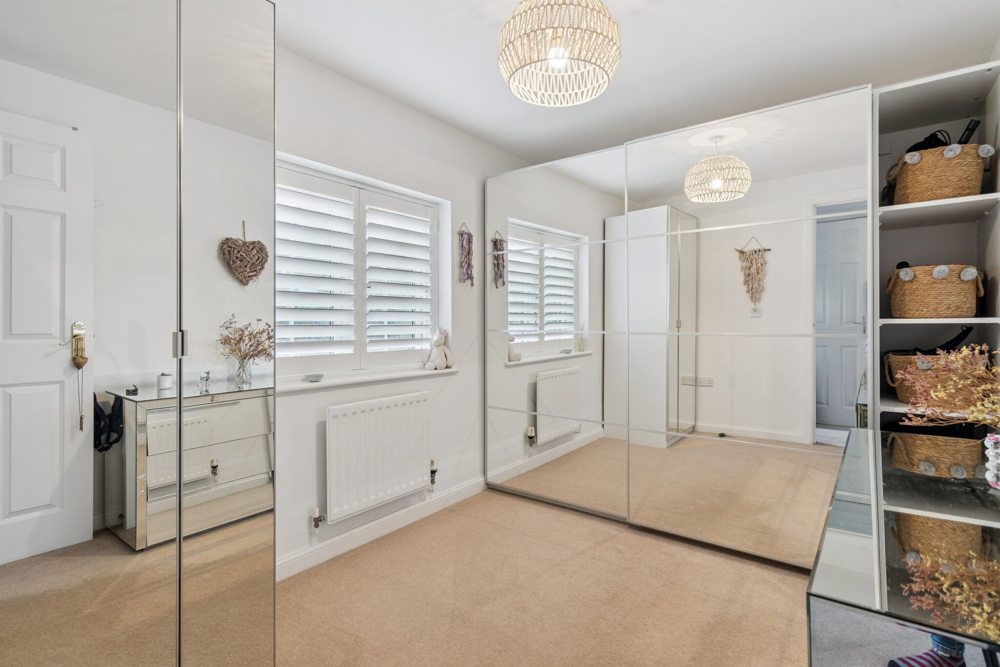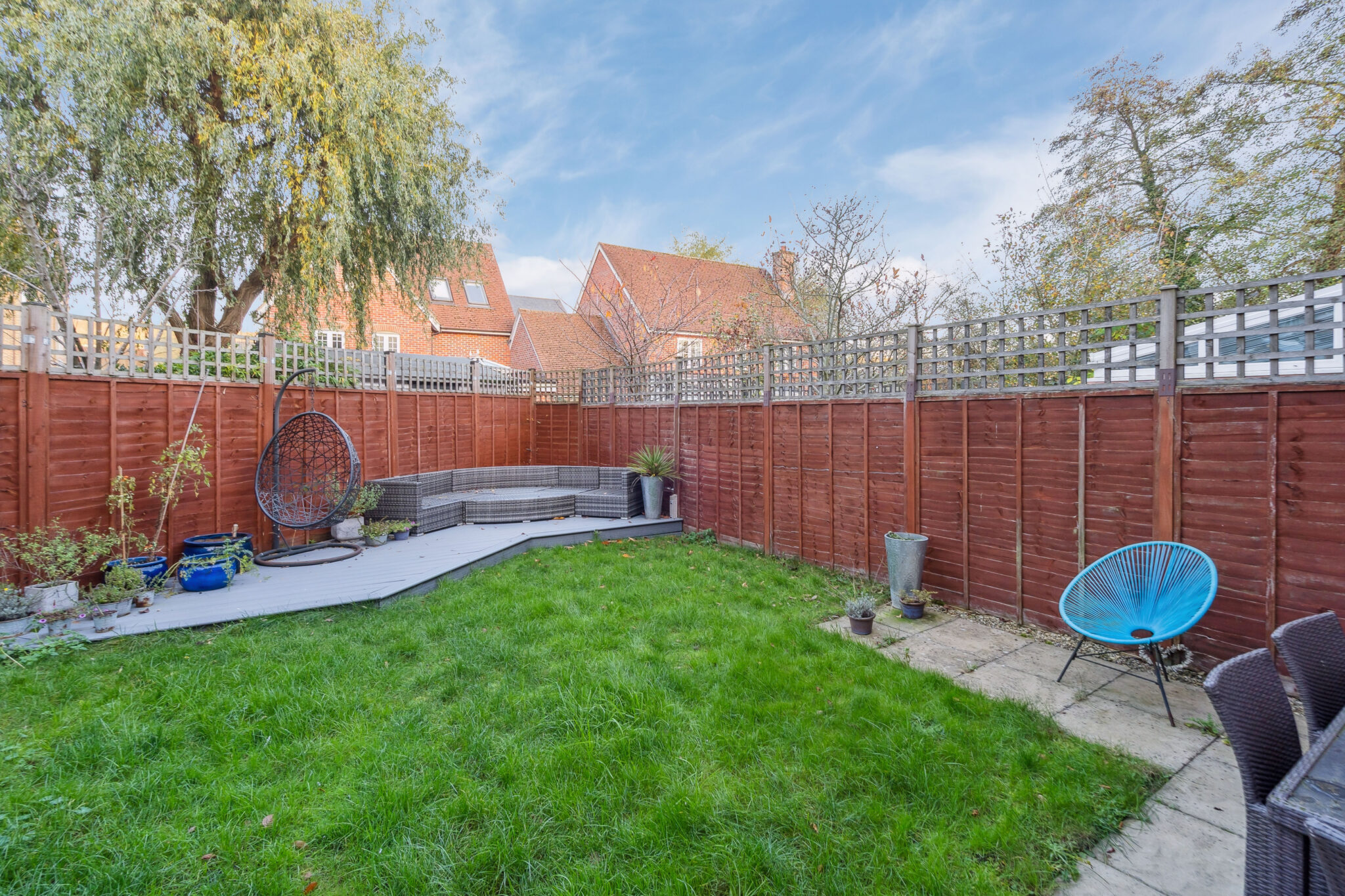 Upstairs, you’ll find three good size bedrooms, including a main bedroom with en suite shower and a built-in wardrobe. There is also a family bathroom. To the front, there’s a communal play area, and the property is just a short stroll from the amenities of Wooburn Green.