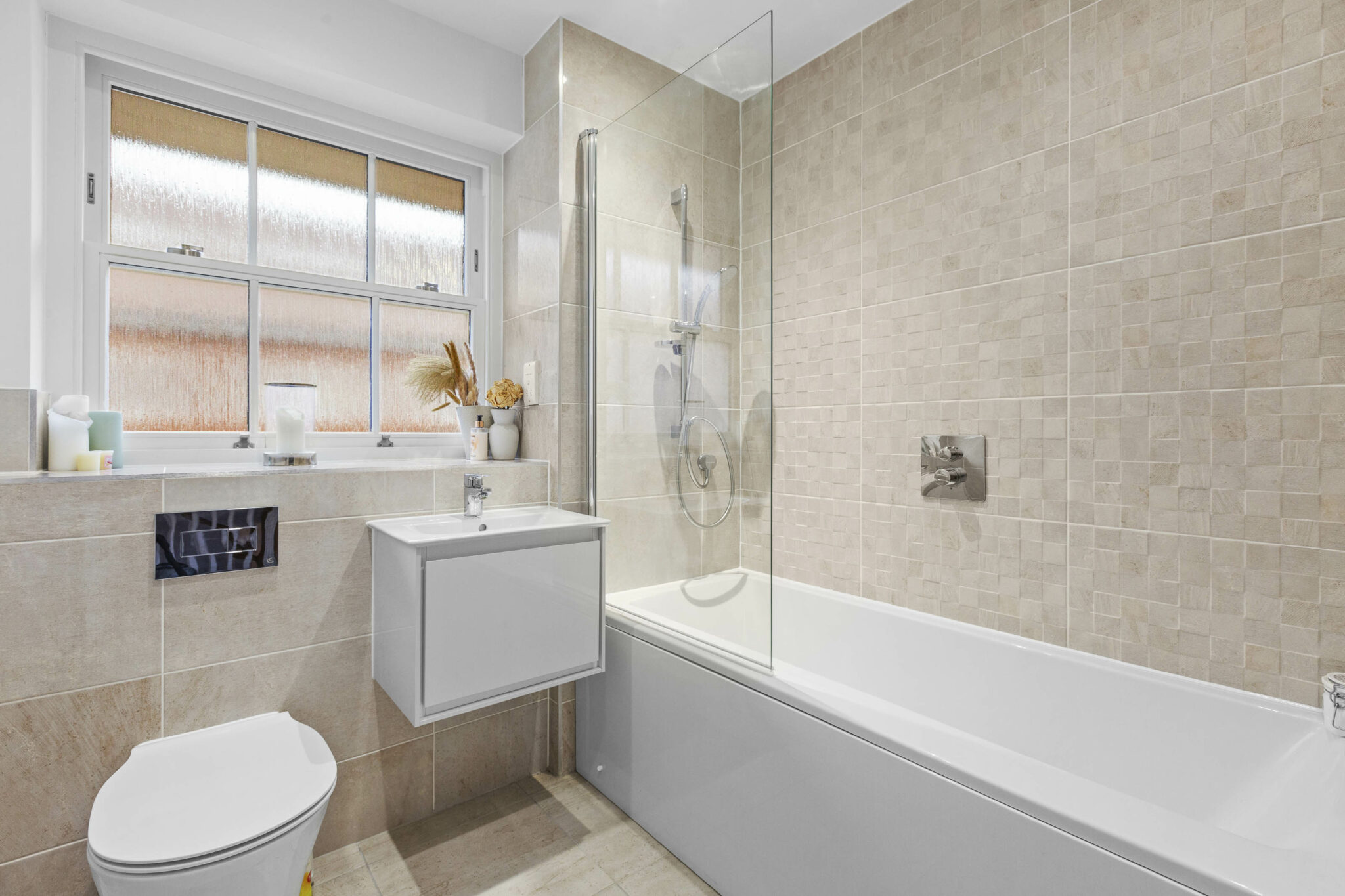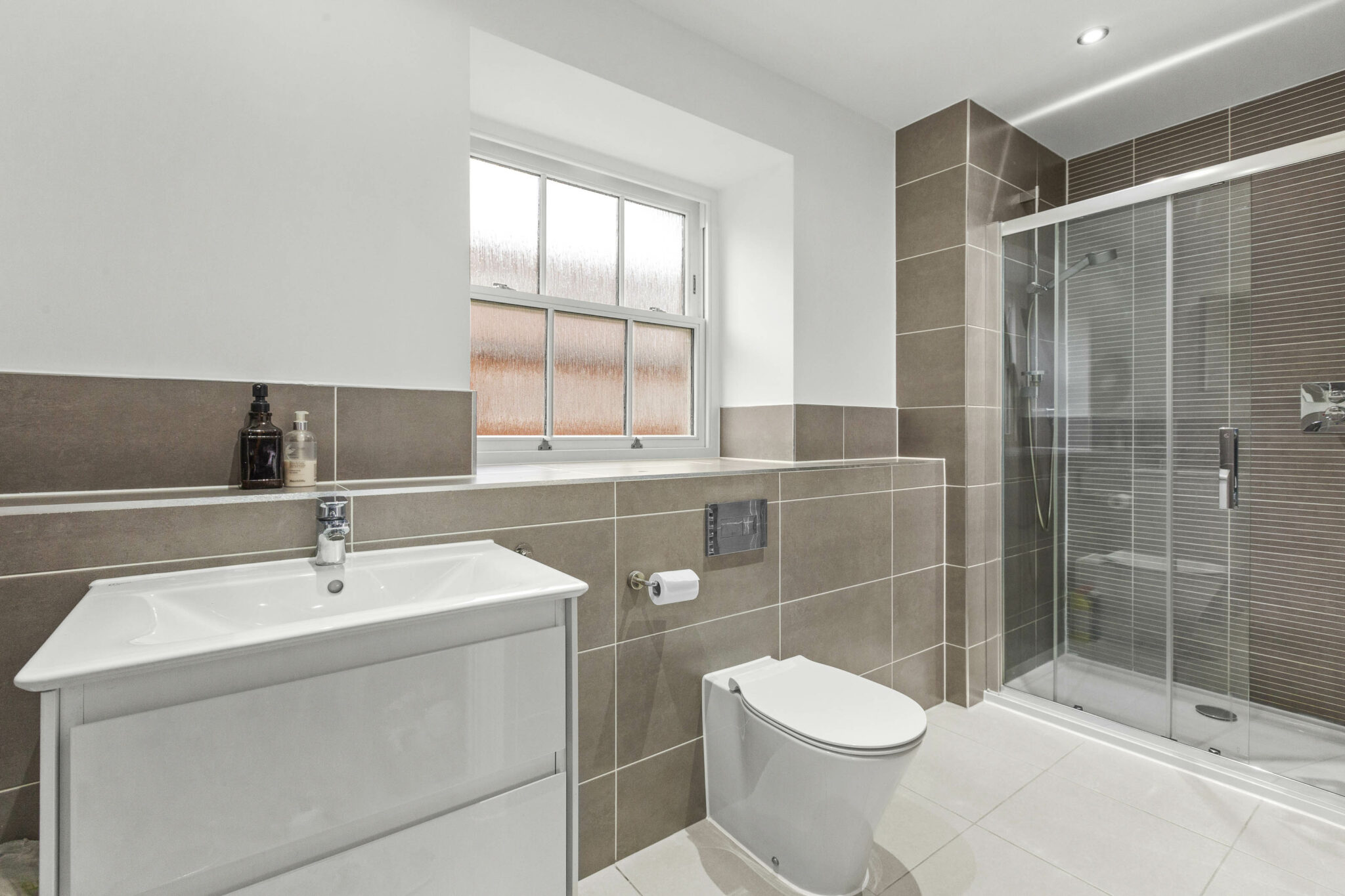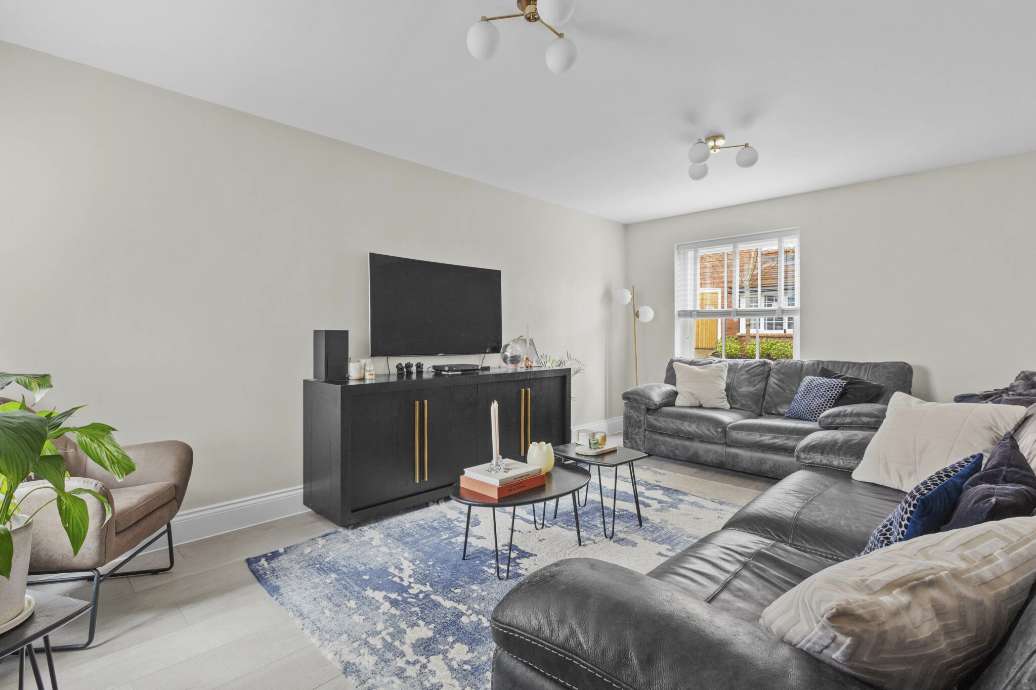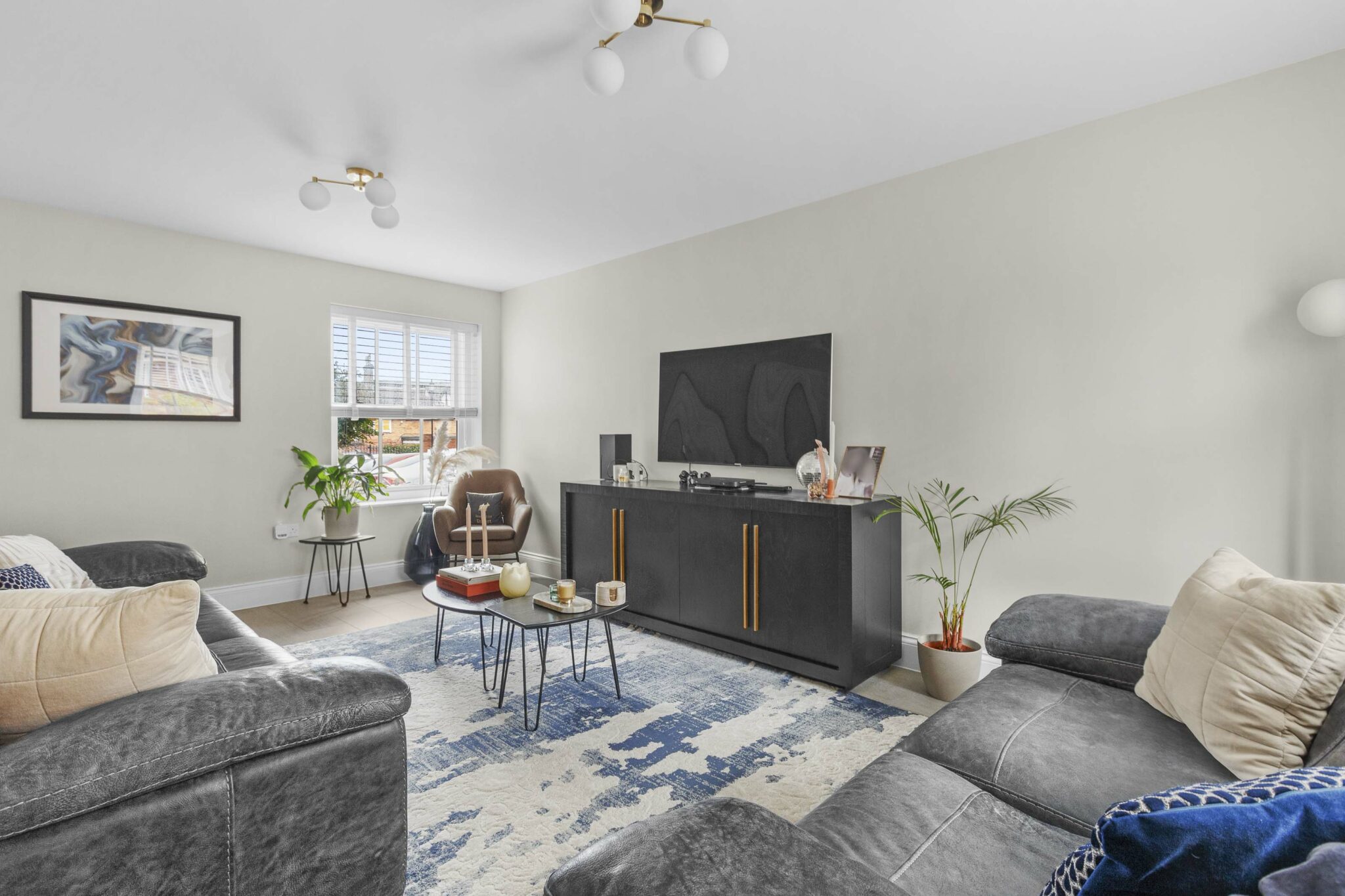 The sitting room is generous in size and benefits from a double aspect, making it feel airy and inviting. There is a large storage cupboard to help keep things tidy, and the same beautiful flooring continues here. Upstairs, the principal bedroom is a real treat. It’s a luxury size, with space for fitted cupboards for plenty of storage and a generous ensuite for added privacy. The guest bedroom also has its own ensuite shower room, while the third double bedroom is served by a beautifully appointed family bathroom.