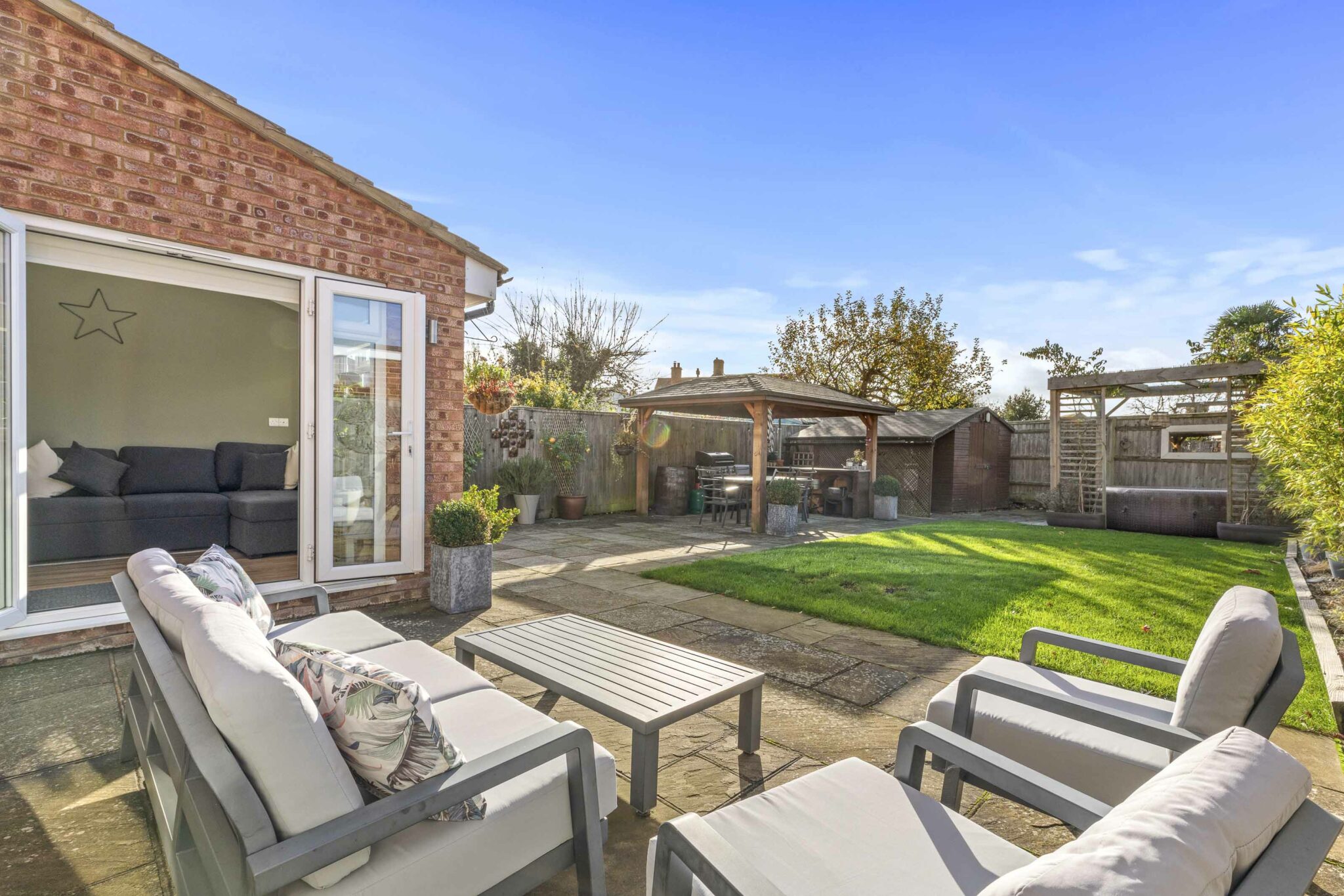 Step into this beautifully presented extended family home, where open-plan living truly shines. The kitchen, dining, and family area flows effortlessly into the formal sitting room, which features bifold doors opening onto the garden and filling the space with natural light.