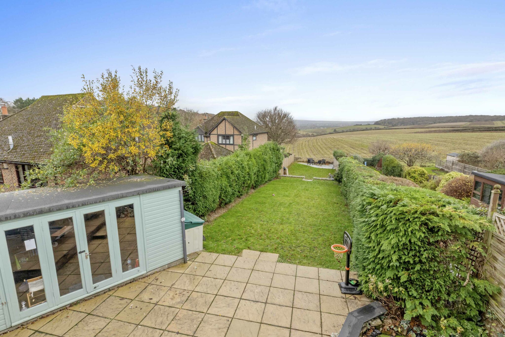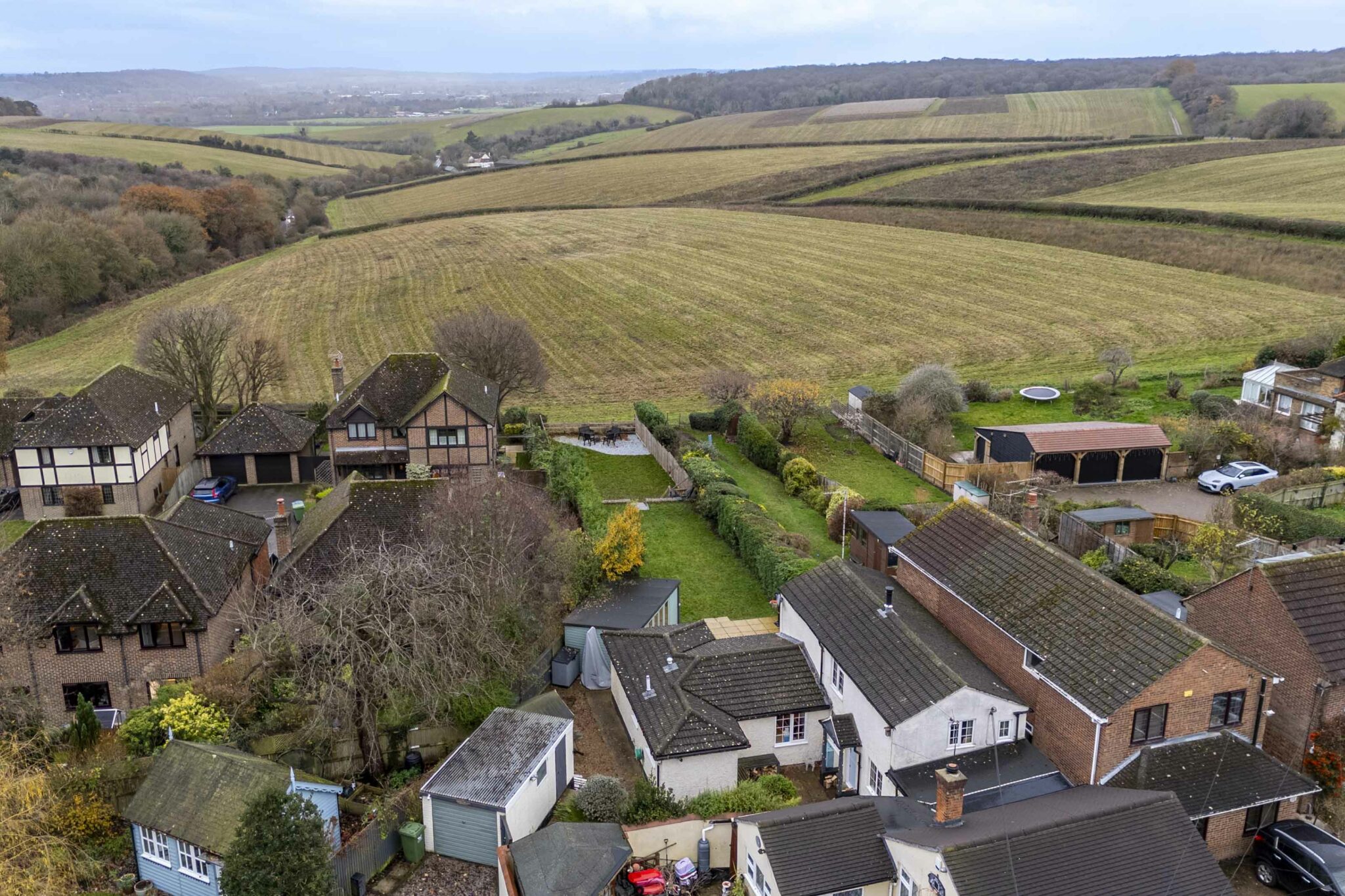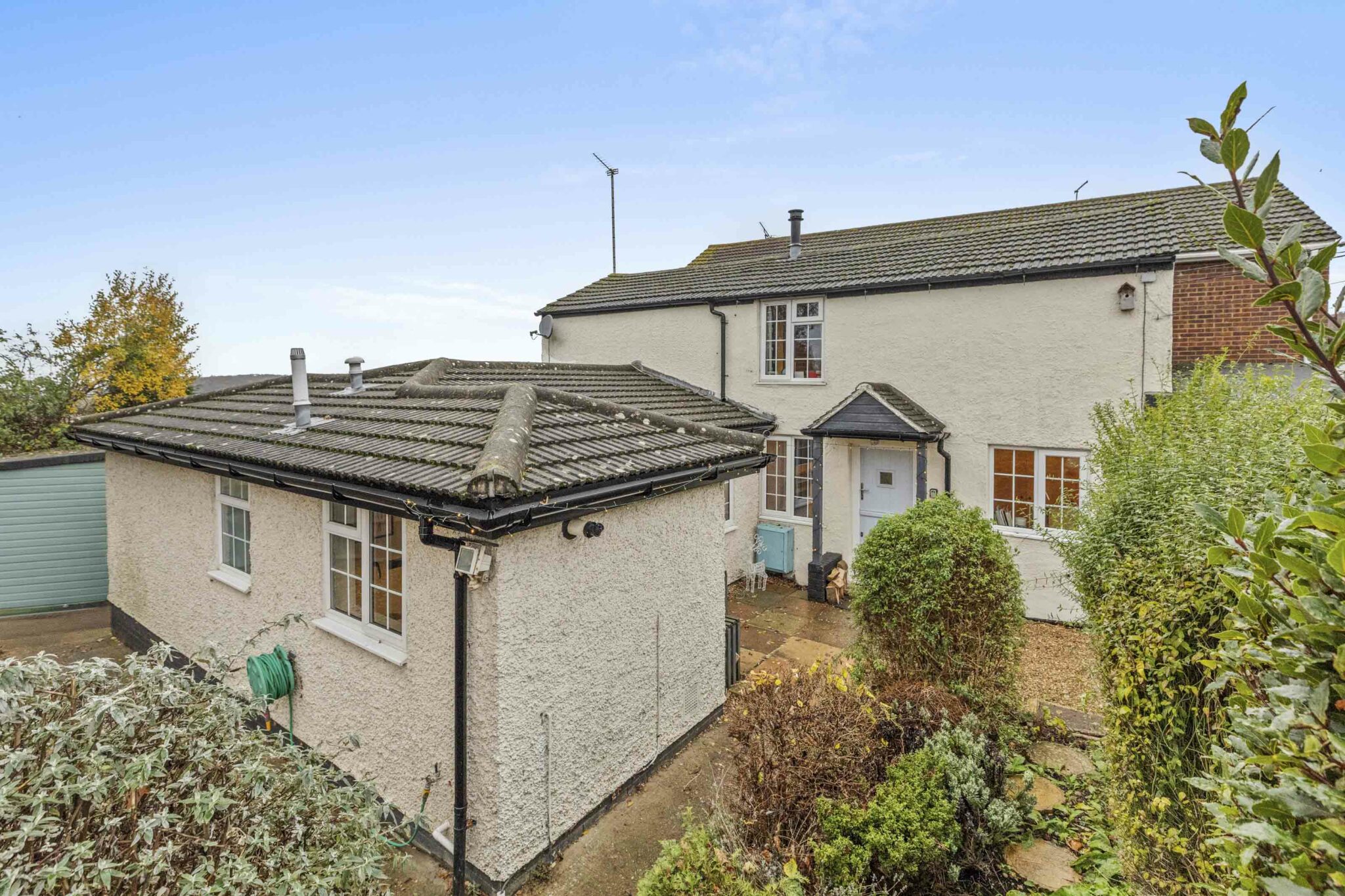 Dating back to the 1800’s, a sympathetically extended and modernised highly individual four bedroom semi detached cottage with spacious and versatile accommodation. The open plan ground floor accommodation takes full advantage of the fantastic views over the south facing garden and the beautiful Chiltern landscape, arguably some of the best in Bucks. The kitchen/breakfast room and bathroom have been upgraded, an attractive split level dining room with feature cast iron wood burner, ground floor bedroom, additional shower room, useful garden building currently used as a gym. On the first floor are three further bedrooms, the main bedroom benefitting from countryside views. The property is set in a private no-through road on the village outskirts, the property is approached via a driveway providing parking facilities leading to a single detached garage.