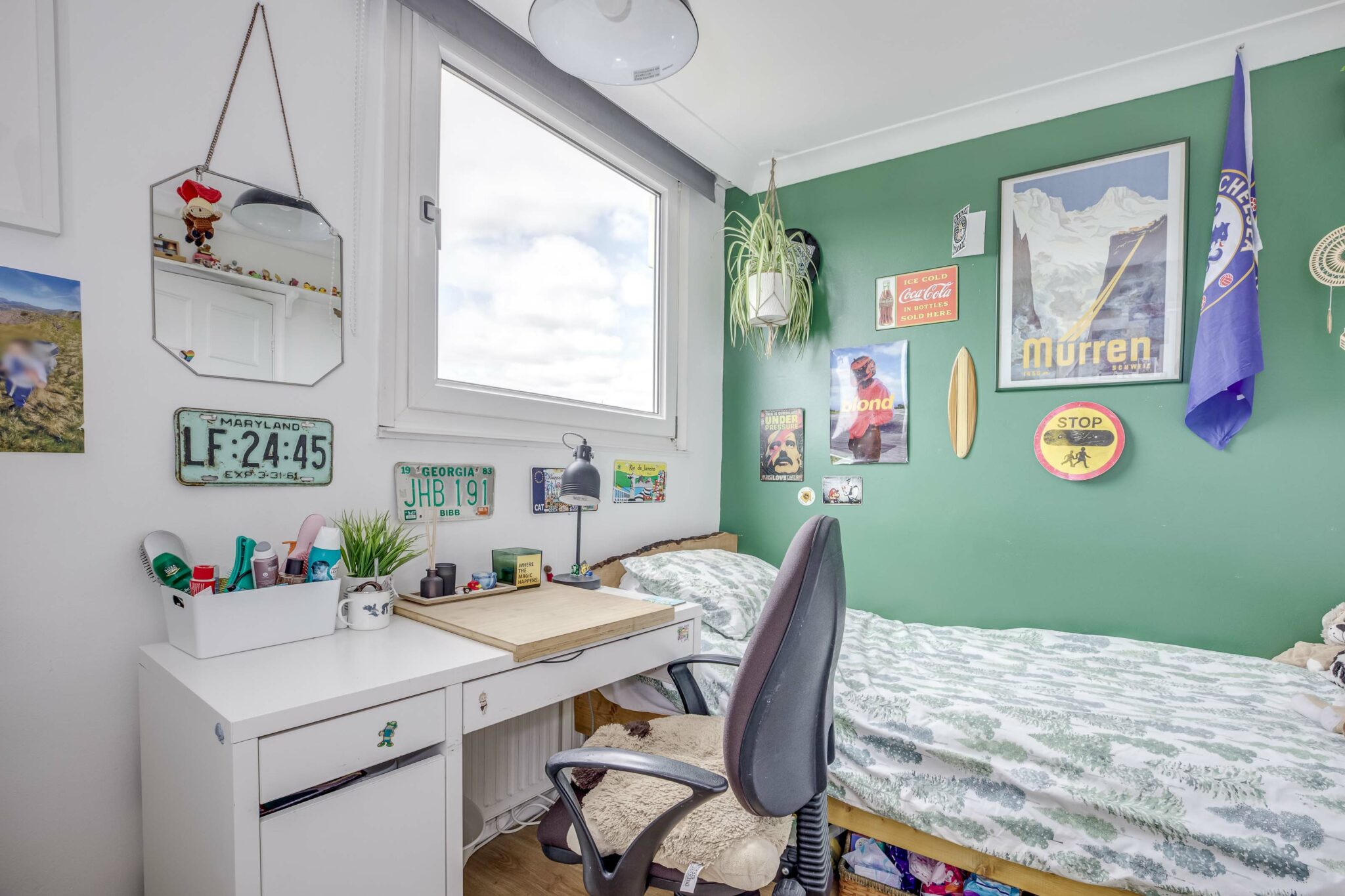 The principal bedroom offers a peaceful retreat with recently refitted ensuite facilities and stunning panoramic views. Accompanying this, a well-appointed family bathroom and a separate wc cater to the needs of the household.