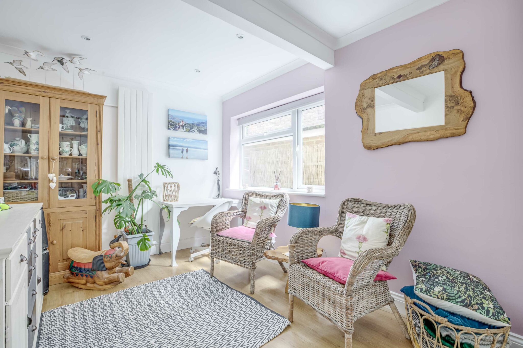 The heart of the home is undoubtedly its beautiful kitchen, dining, and family room, where natural light floods in through patio doors that open onto the rear garden. The well-equipped kitchen features integrated appliances, ensuring convenience and functionality for every-day living. The adjacent double fronted sitting room boasts a charming woodburning stove, creating a cosy atmosphere for entertaining or relaxation. Boasting versatility, the property also includes a family room/office, providing a flexible space to suit your lifestyle needs.