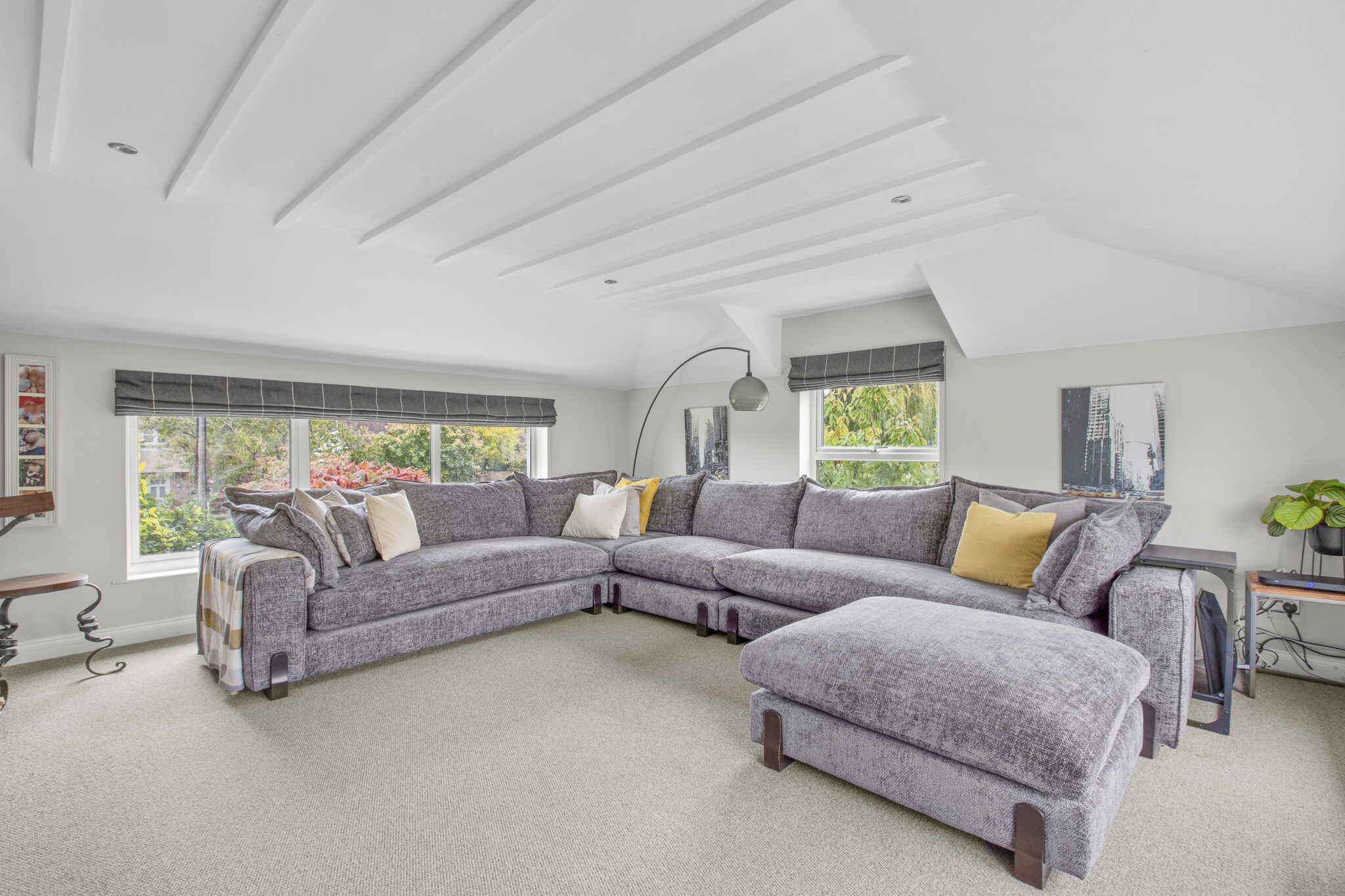 Ascending to the first floor, a versatile sixth bedroom/study with an ensuite provides ample space for work or relaxation. Two further reception spaces offer flexibility for various living arrangements, ensuring every family member can find their preferred spot to unwind.