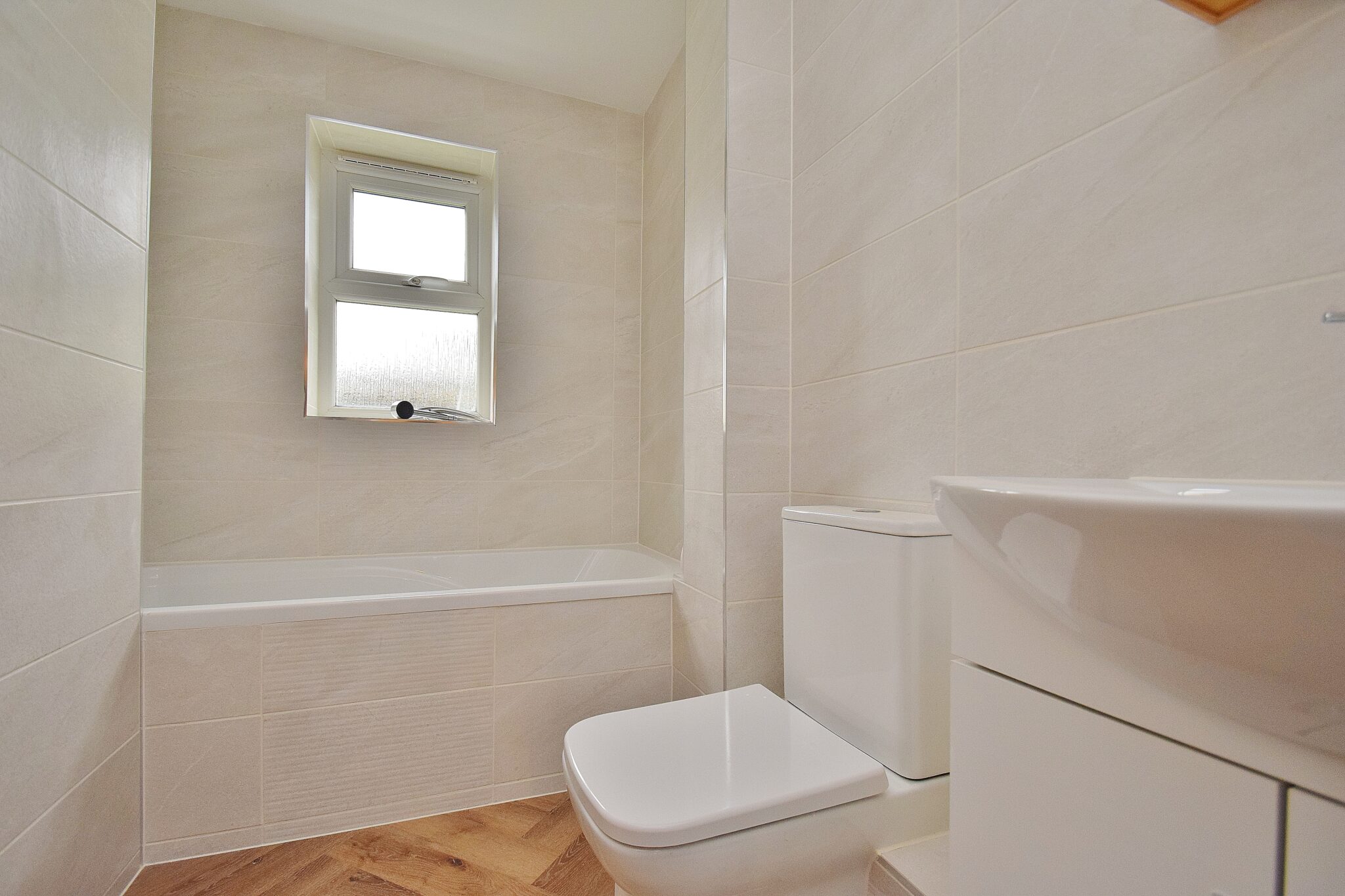 The accommodation comprises its own front door to an open plan kitchen/reception room with a hallway benefitting from storage cupboards, leading to the bedroom with wardrobes and bathroom fitted in a white suite. The property offers double glazing.