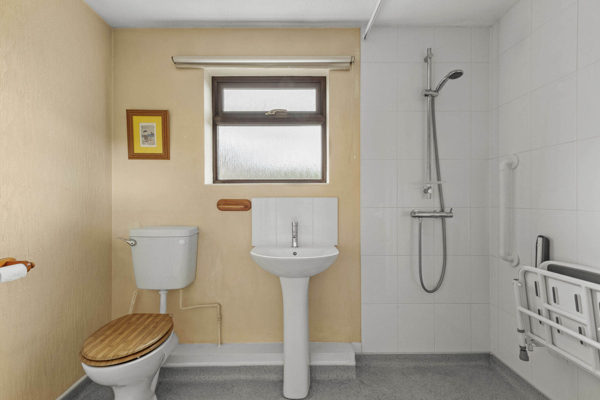 A comfortable double bedroom with space for free standing furniture served by a convenient wet room, ensuring ease and accessibility for all residents.
