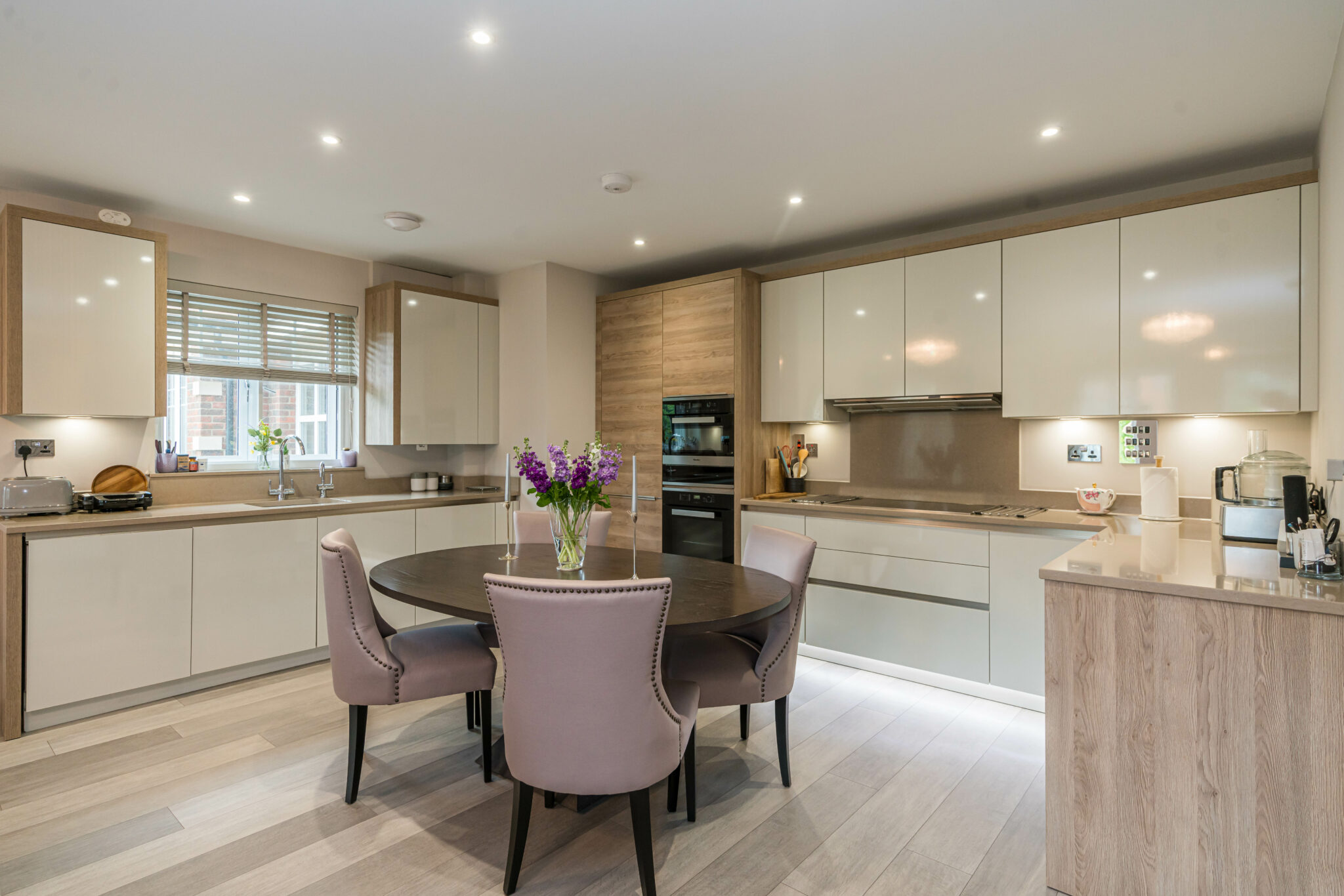This two bedroom first floor apartment offers over 1200sqft of accommodation, the lounge dining space is light with a juliette balcony that has a west facing aspect. Open to this is the kitchen which was designed by Wooden Heart of Weybridge which offers a contemporary finish with stone worktops and integrated appliances.