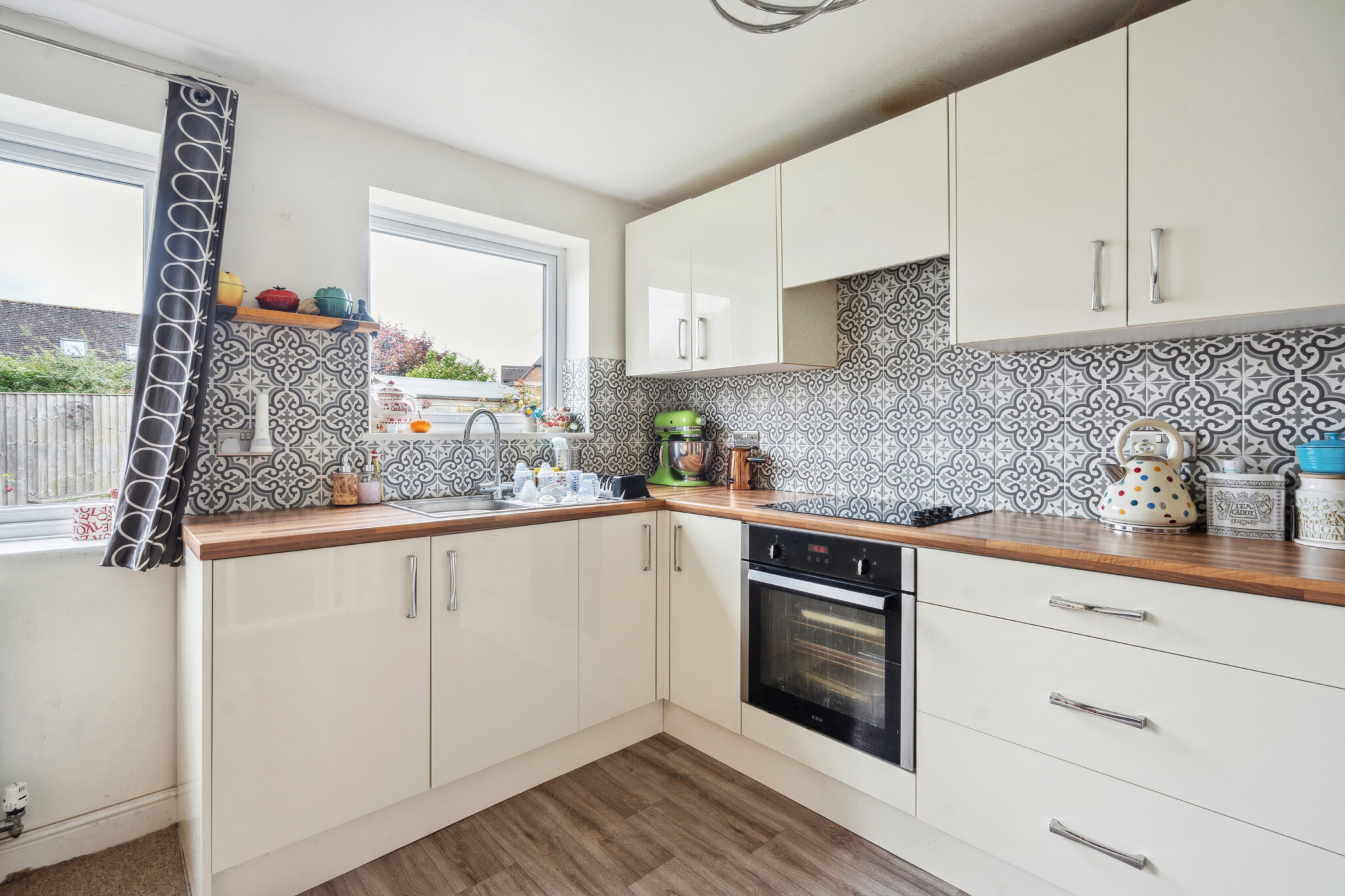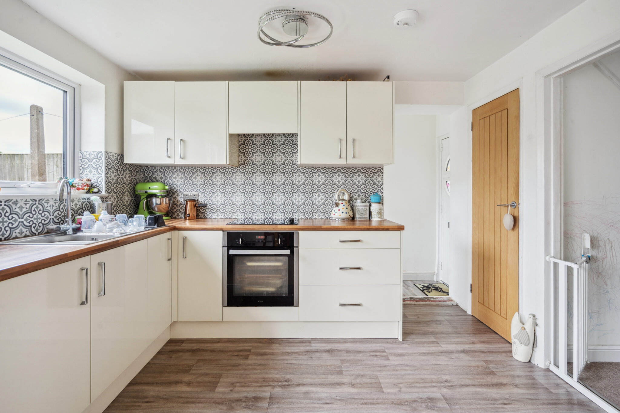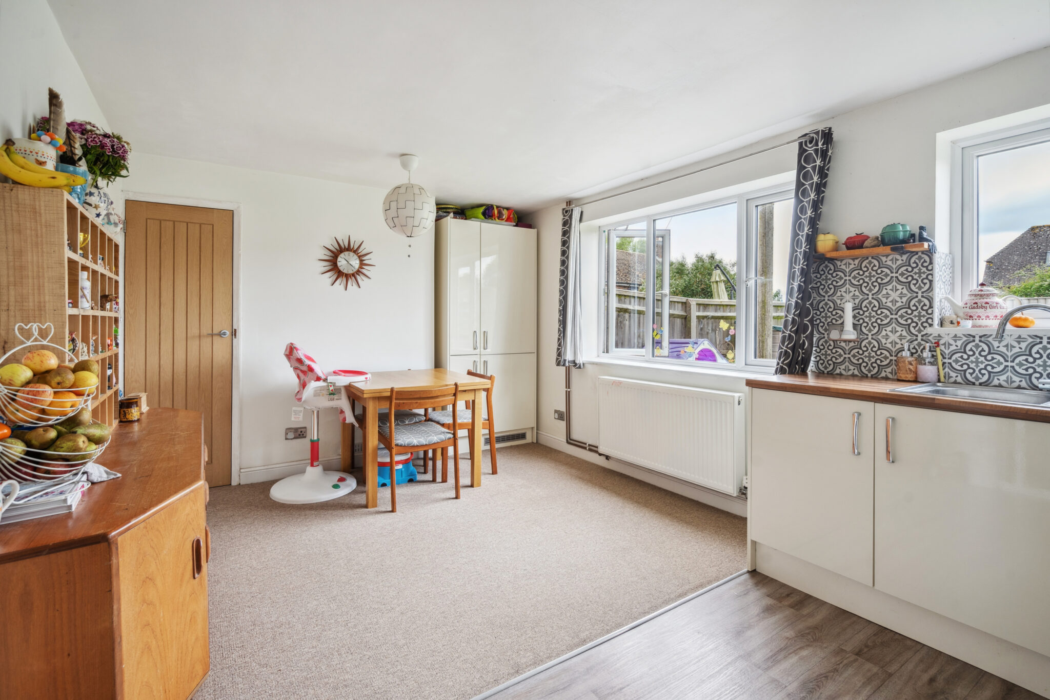 The kitchen area features a range of eye and base level units complimented by wooden countertops and attractive wall tiles, whilst the dining area offers plenty of floorspace and additional storage in the alcoves.