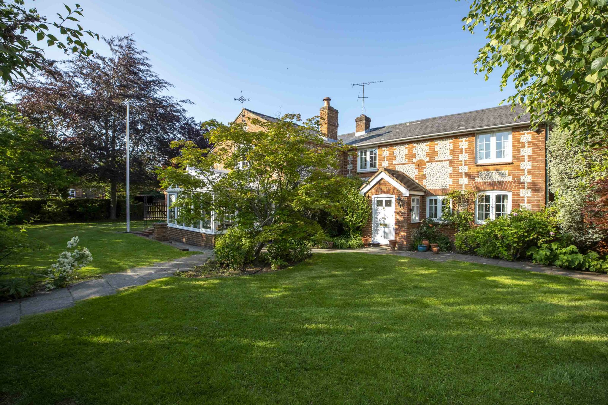 Rare to the market and offered for sale with a complete onward chain is this substantial period home set in a quiet cul de sac with delightful wrap around gardens. This picturesque brick & flint property offers approx. 2771 sq ft of well-balanced accommodation plus a fantastic detached double garage/workshop, ideal for the car enthusiast.