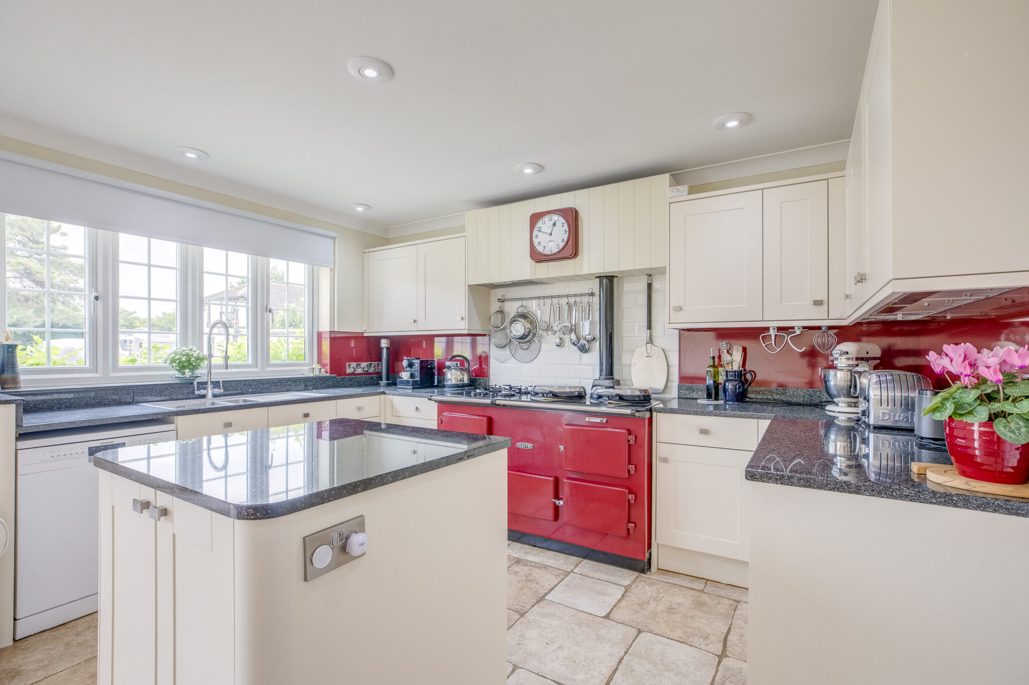 All the main reception rooms lead off the reception hall, with a huge double aspect sitting/dining room with a lovely stone fireplace and wood burning stove. The large family room has doors opening onto the garden and the adjacent study also overlooks the garden. The generous kitchen/breakfast room is well equipped with contemporary units incorporating granite worktops, a full range of appliances and the essential Redfyre four oven range. In addition there is a useful pantry. There is a family size utility room and a cloakroom.