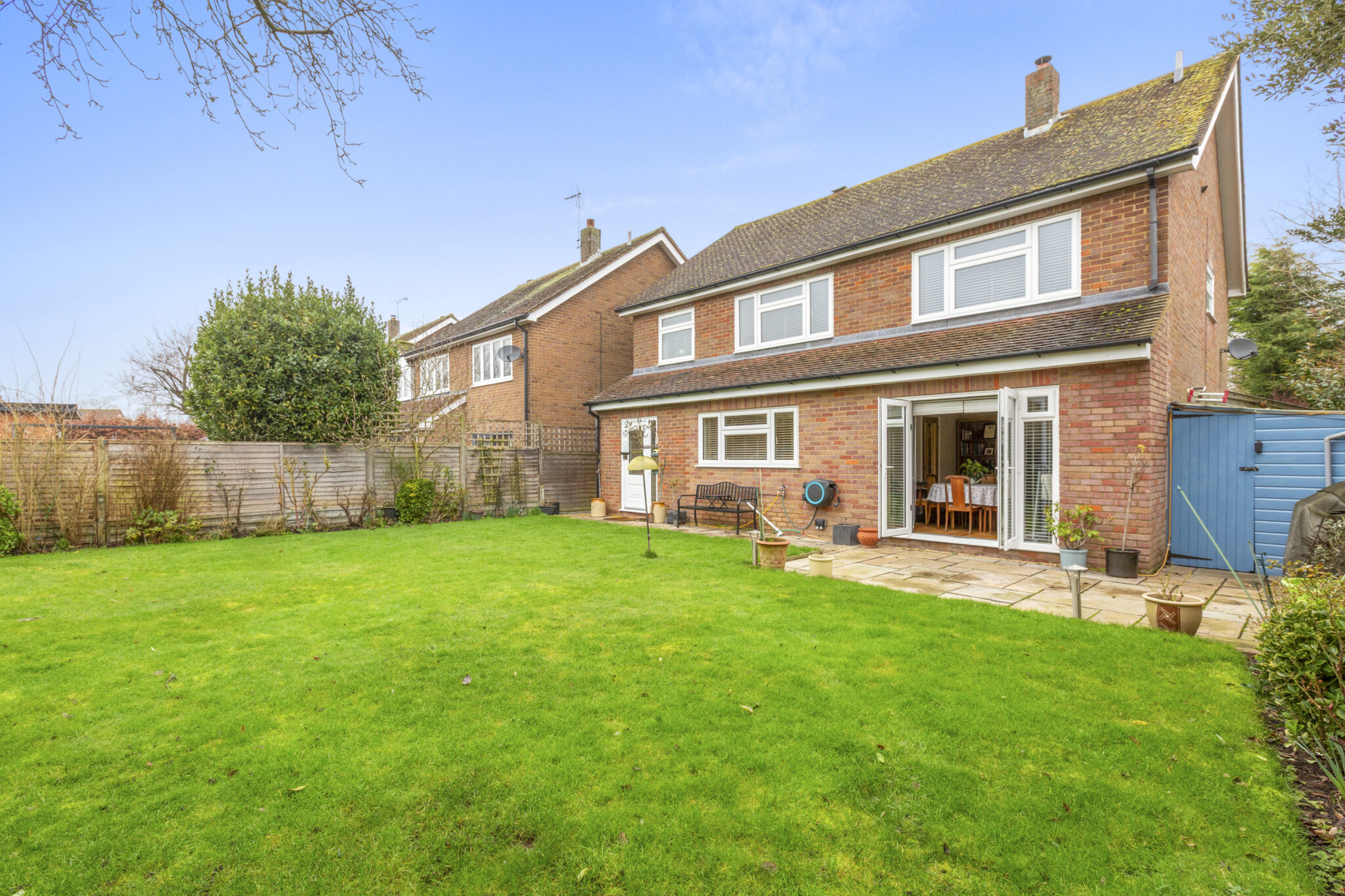 The outdoor space of this stunning property is equally captivating, with a lush front lawn greeting visitors as they arrive. The block paved driveway leads seamlessly to the garage and front door, where the electric car charger stands ready for use. A side gate grants access to the southerly facing rear garden, where a generous patio beckons for leisurely afternoons basking in the sun. The well-maintained garden features a sprawling lawn bordered by trees and mature shrubs, creating a serene retreat for relaxation or entertaining. A practical touch comes in the form of a storage shed, offering additional space for tools or equipment. With its perfect blend of indoor sophistication and outdoor charm, this property epitomises modern elegance and effortless living, promising a lifestyle of comfort and refinement for discerning buyers looking to make a statement with their next home.