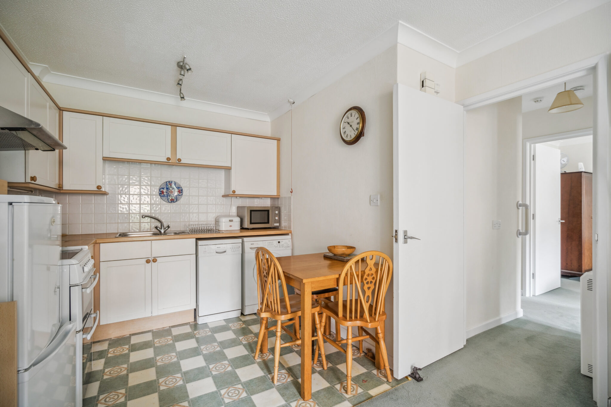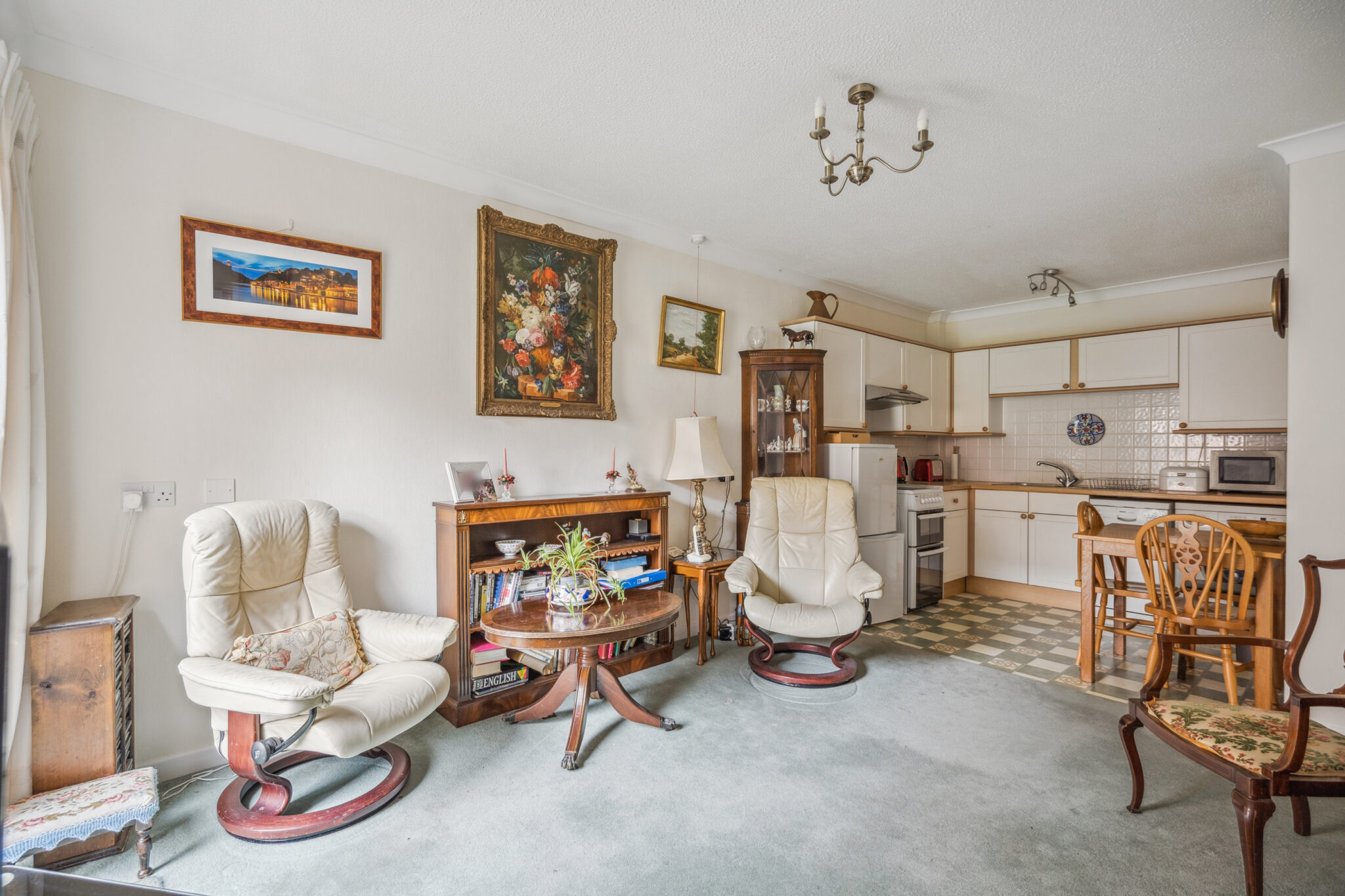 In short, the property consists of an entrance porch, sitting room opening to the kitchen, two good size bedrooms, one of which boasts a separate study/office space and a bathroom. The property has been well maintained and is clean and tidy in its presentation with a French door fronting the communal gardens.