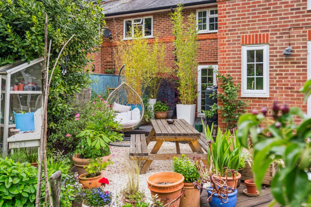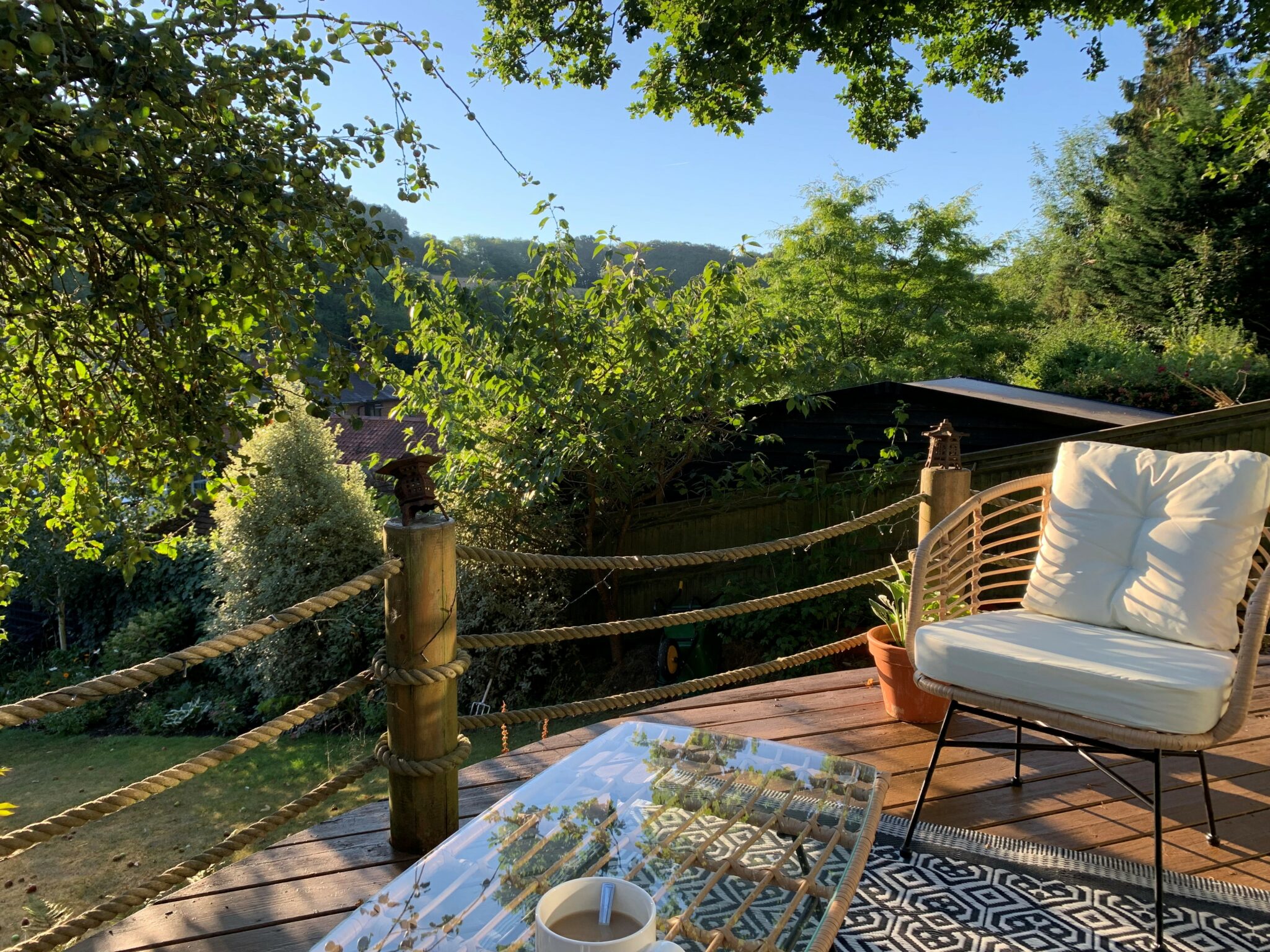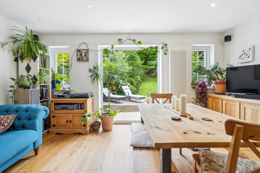 The garden is a standout feature, offering genuine countryside living with woodland directly beyond the boundary. An elevated summer house and decked terrace create the perfect setting for al fresco dining or simply soaking in the surroundings. To the front, a practical garden provides ample driveway parking.