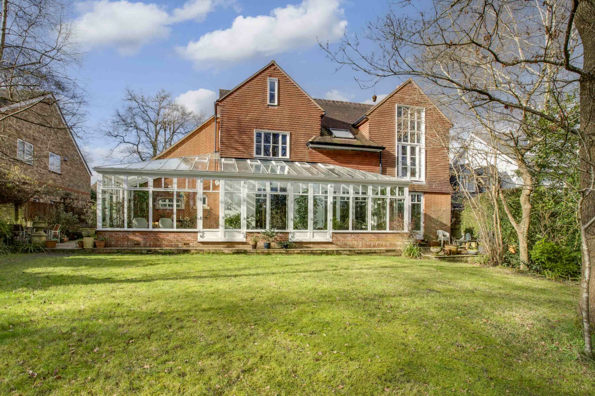 The mature rear garden has well established trees and shrubs, with a generous area of lawn and is a natural environment for wildlife, insects and bees.