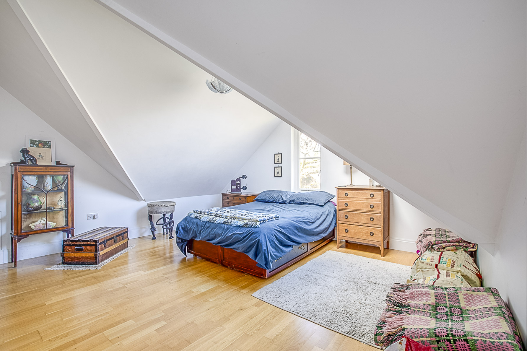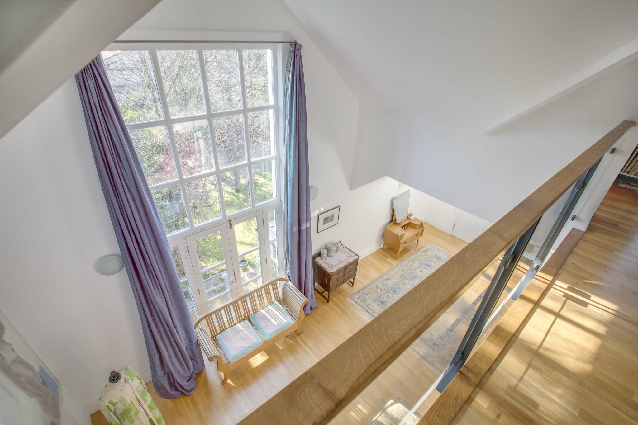 On the first floor in the principal bedroom, the eye is drawn to a spectacular double height window with external glass balustrade and vaulted ceiling, this oversize room contains a separate walk-in wardrobe and bathroom. There are two further ensuite bedrooms on this floor, together with a fourth and a family bathroom. On the second floor there are bedrooms five (presently a study) and bedroom six along with a spectacular studio space with glass balustrade with views to principal bedroom below.