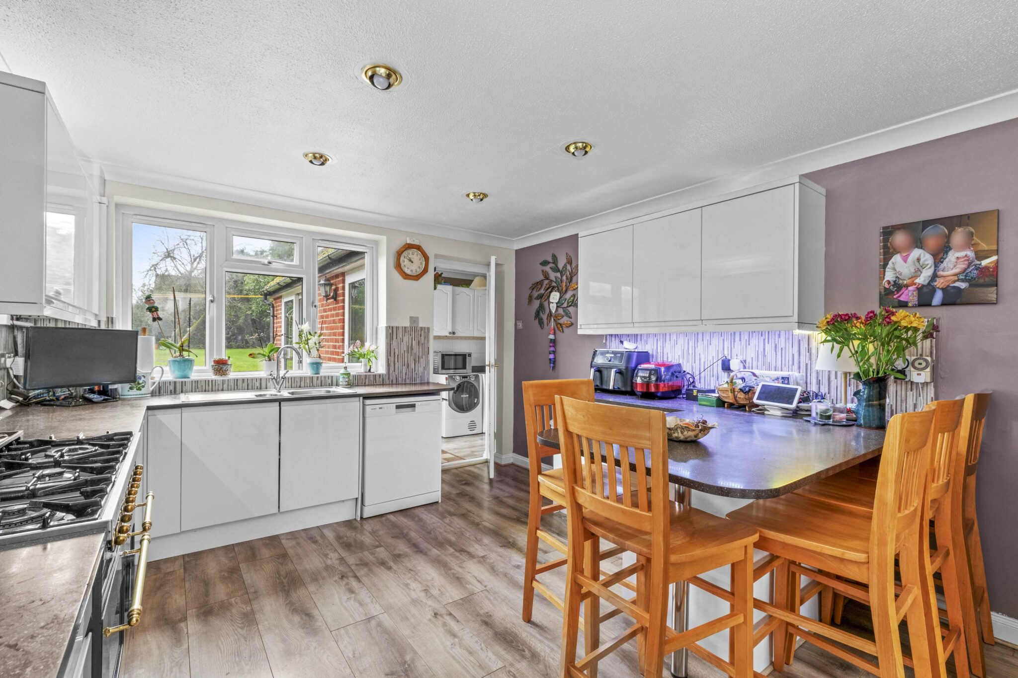 Upon entering the property, you are greeted by a welcoming entrance hall that provides access to the well equipped kitchen and breakfast room, which features a walk-in pantry and a door leading to a separate utility room and convenient WC. The generous sitting room enjoys double doors, creating a seamless connection to the garden, and also offers access to a spacious family room, perfect for both relaxation and entertaining. A separate dining room, complete with sliding doors, provides an ideal setting for formal dining or family meals. Upstairs, the accommodation comprises four well proportioned double bedrooms (one of which is currently utilised as a home office), alongside a single bedroom, all of which are served by a well appointed family bathroom and a separate shower room, ensuring ample facilities for a growing family or guests. The property’s layout is both practical and versatile, making it suitable for a variety of modern lifestyles. Additional features include a large driveway providing off road parking for at least four vehicles, which leads to an integral garage, offering further storage or parking options.
