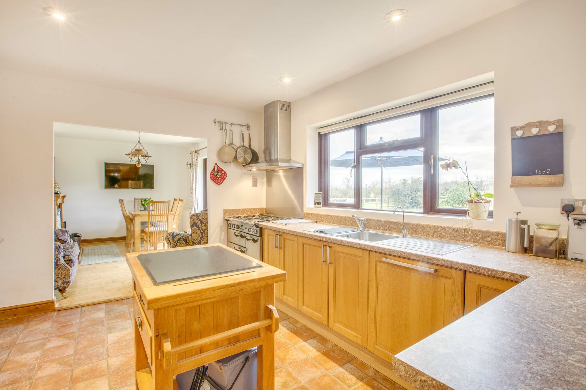 The front door opens into a large reception hall with a cloak/shower room and a utility room. The ‘L’ sitting room lies at the rear with a useful study area and doors out to the garden. There is a comfortable family room, separate dining room and a study/studio. The kitchen/breakfast room is well equipped with a comprehensive range of units, a pretty fireplace in the dining area and there are casement doors out to the garden.