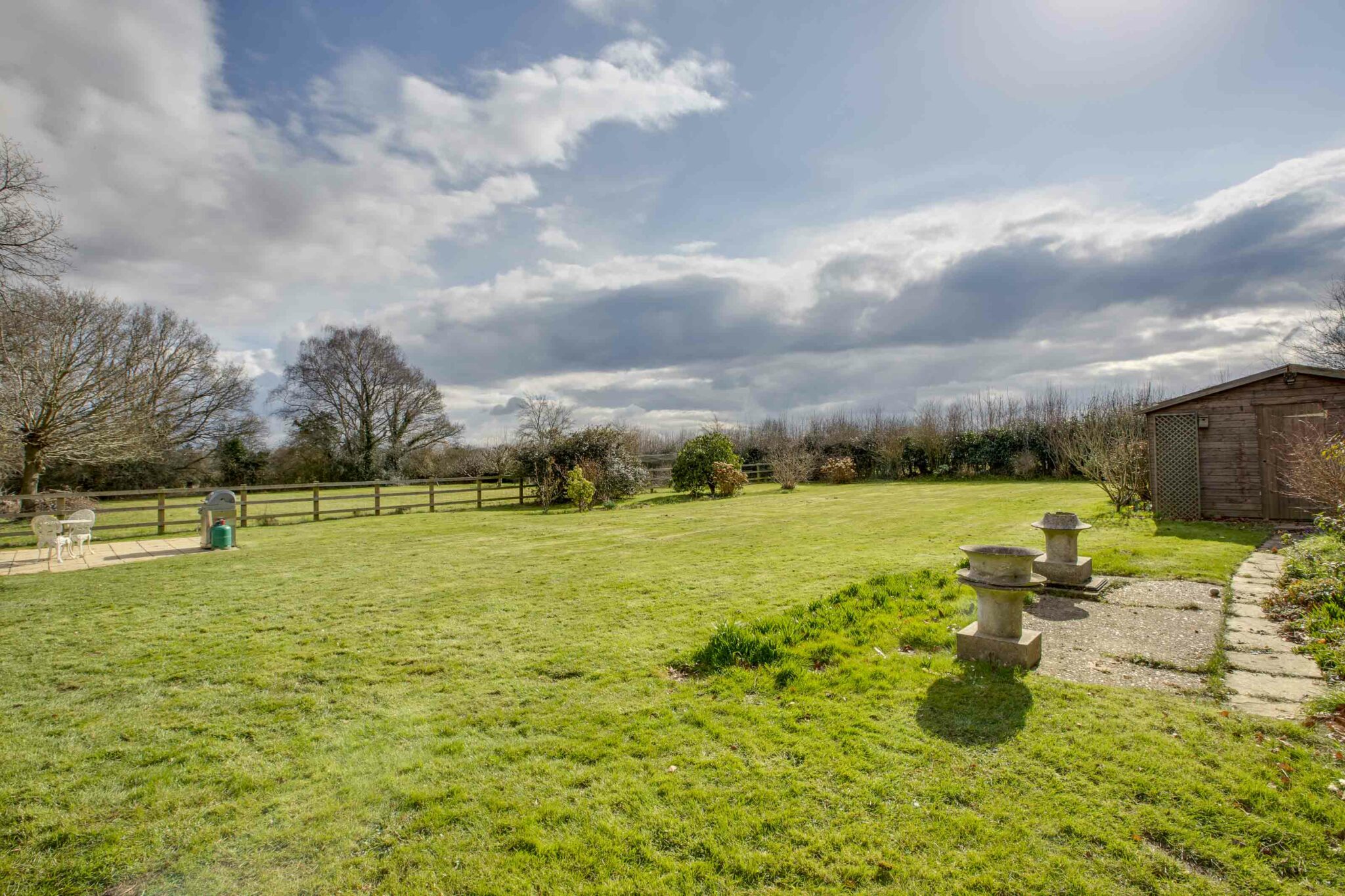 The generous rear garden is south facing with a large paved terrace across the rear and wide expanse of lawn. There is a large timber garden shed and store.