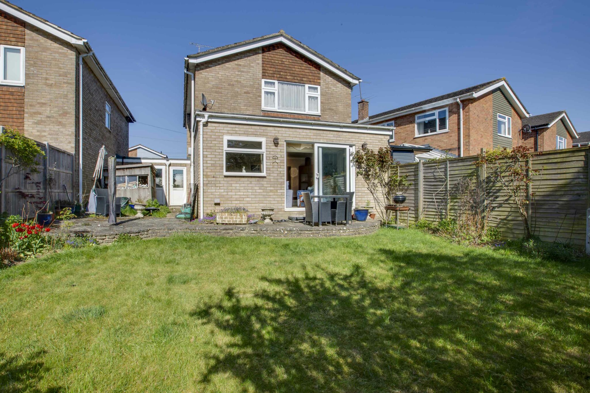 The property features an entrance hall with a downstairs cloakroom, the spacious kitchen has excellent scope for customisation, with the potential to create an open-plan space by knocking through to the dining room. The generous living room benefits from a feature fireplace and sliding patio doors leading out to the rear garden, seamlessly blending indoor and outdoor living. The large main bedroom offers the opportunity to add an ensuite for added convenience, while two further bedrooms are served by the family bathroom.