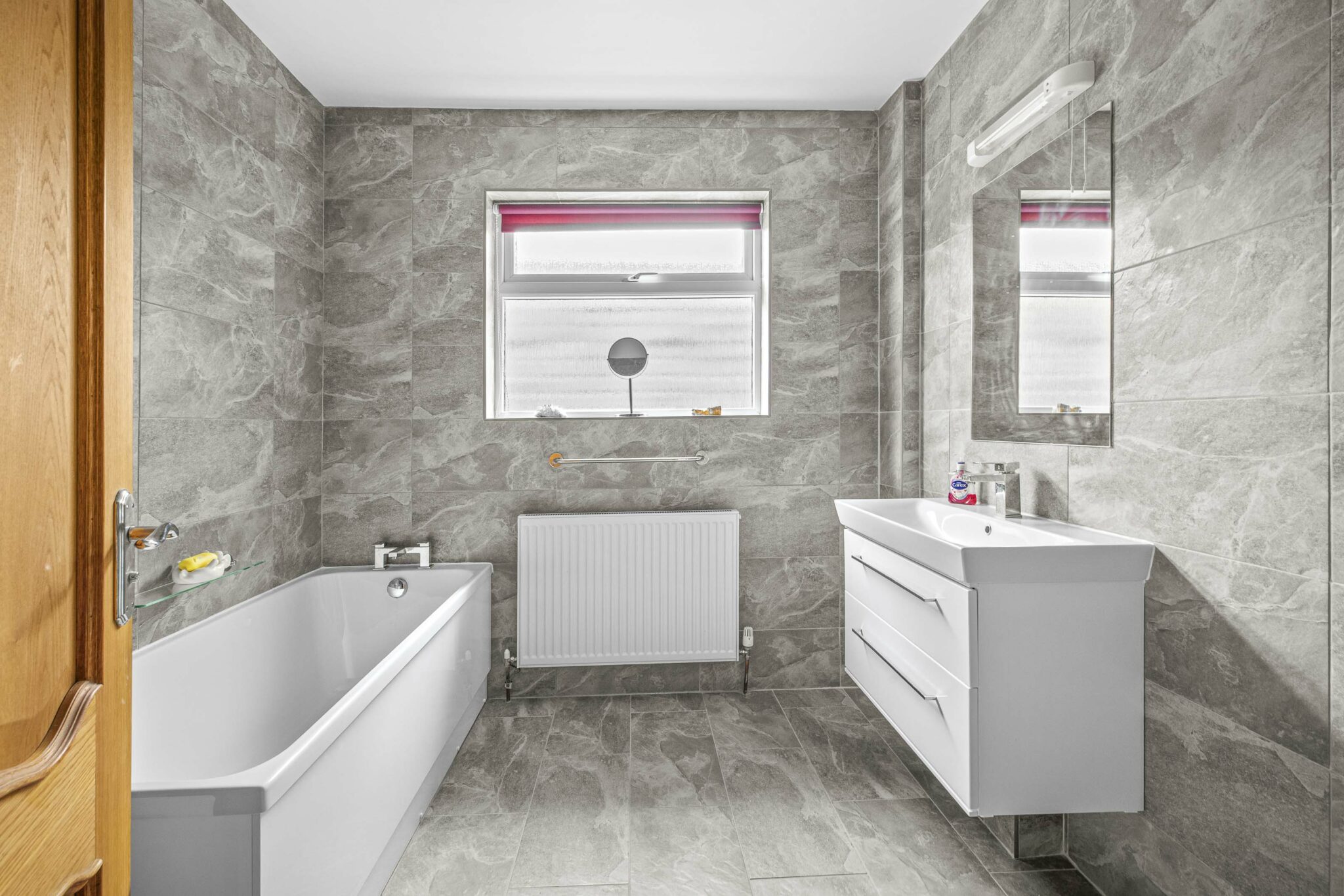 Convenience is key with ample driveway parking at the front, guiding you to the garage and a sizeable garden store. Gated side access seamlessly connects you to the rear garden for easy enjoyment of this outdoor space.