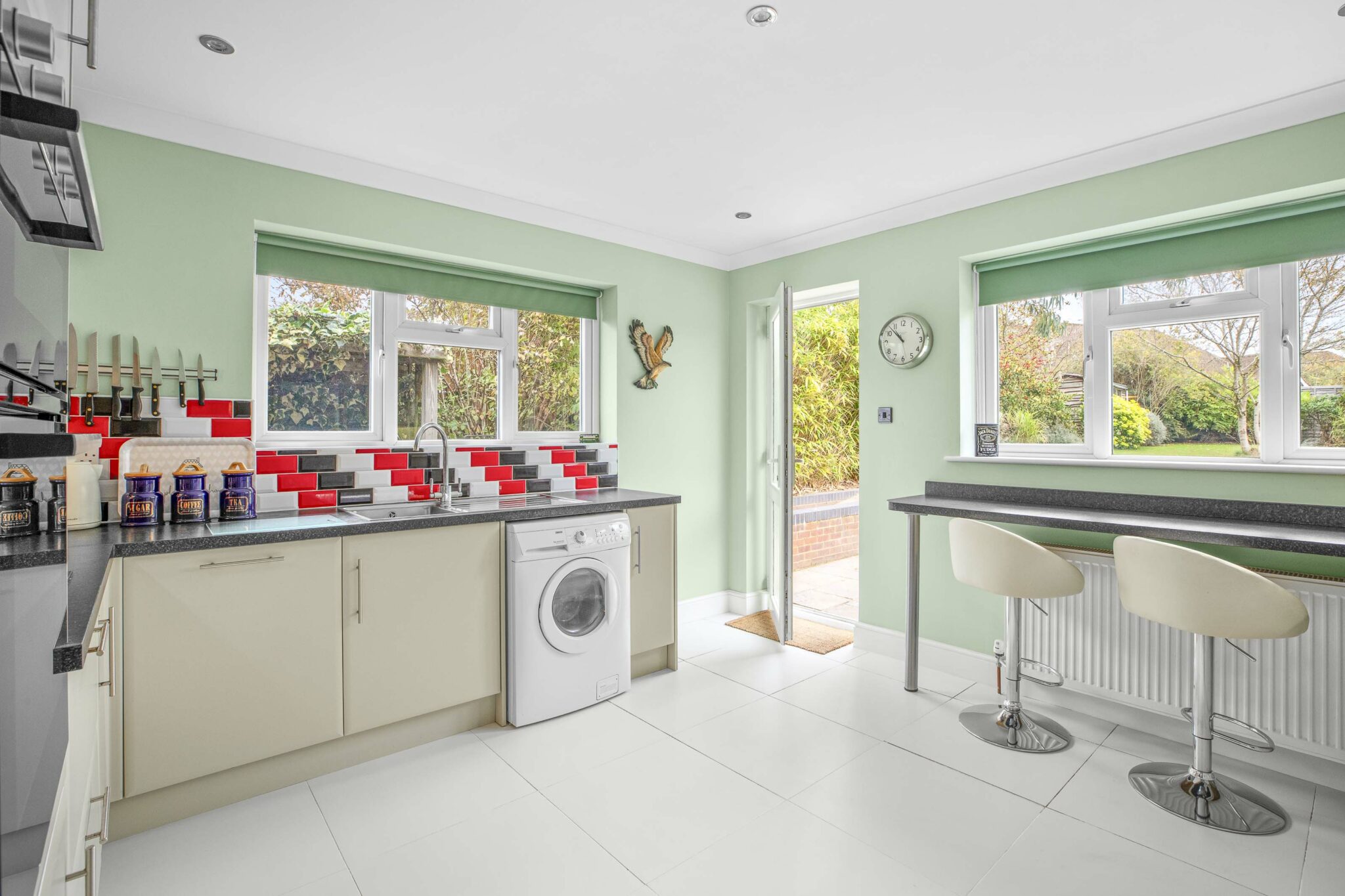 Venture outside to the private and expansive rear garden, a real sanctuary boasting a generous patio area, leading to a vast expanse of lawn with mature shrubs, hedging, and ornamental pond.