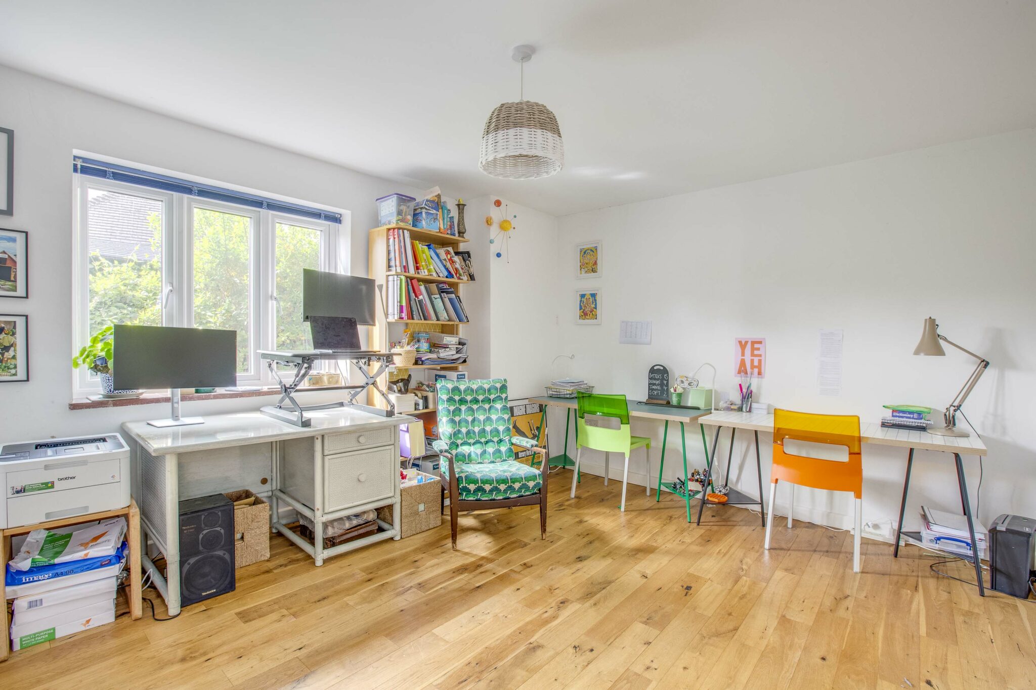 There is a generous driveway to the front along with a paved area screened from the road. The rear garden is predominantly laid to lawn, with well stocked borders and a large paved terrace. The large single garage allows space for a car as well as bikes etc and is fitted with two sets of windows, making it readily convertible to an additional living space (STPP).