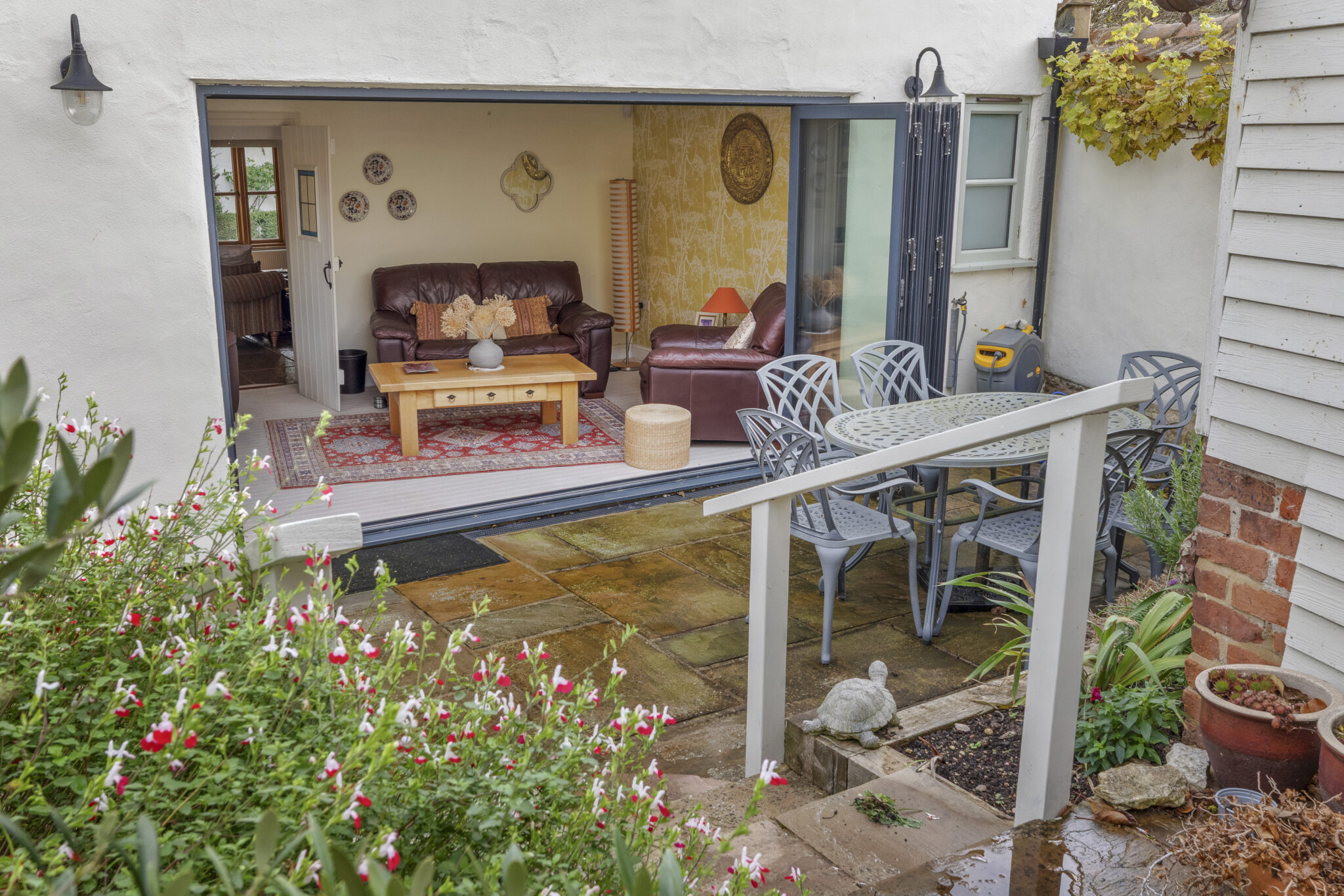 The cottage has been beautifully refurbished in recent years providing a harmonious balance of traditional charm and contemporary style. The light and spacious sitting room is a comfortable space with a flagstone floor and a woodburning stove for those chilly evenings. The family room connects seamlessly with the garden through bi-folds doors opening onto a private terrace. The kitchen/breakfast room is well appointed with a full range of bespoke units, with granite work surfaces, integrated appliances and a ceramic floor with underfloor heating. There is a small lobby off which is a study/bedroom four and along with a utility/shower room.