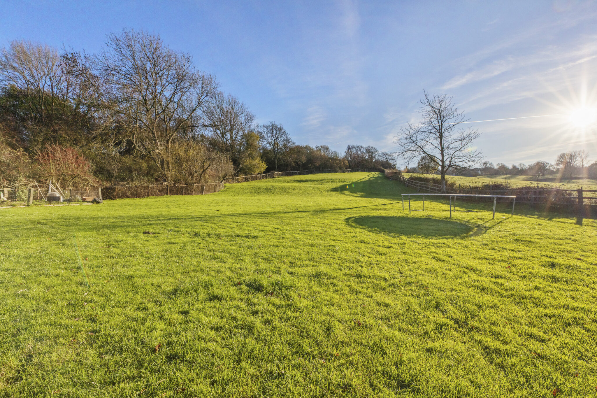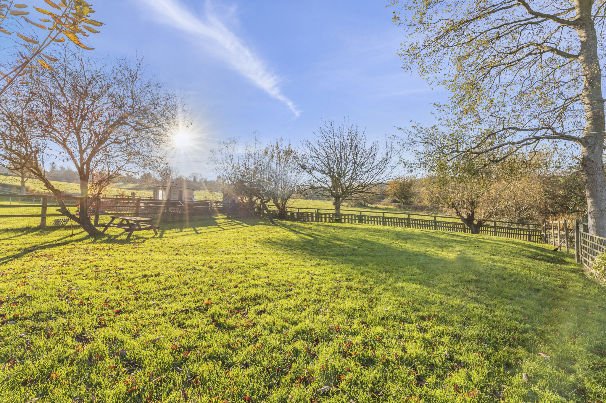 There are formal gardens laid mainly to lawn with a paved area, beds and borders. A pathway leads to the rear where there is a small orchard with pear, plum and apple trees, tool shed 10’ x 6’ (3.05m x 1.83m) and a timber garden store. There is also a large enclosed terrace on the southern side, plus a vegetable garden complete with greenhouse. Beyond the stable block and garaging in an enclosed paddock of approaching one acre.