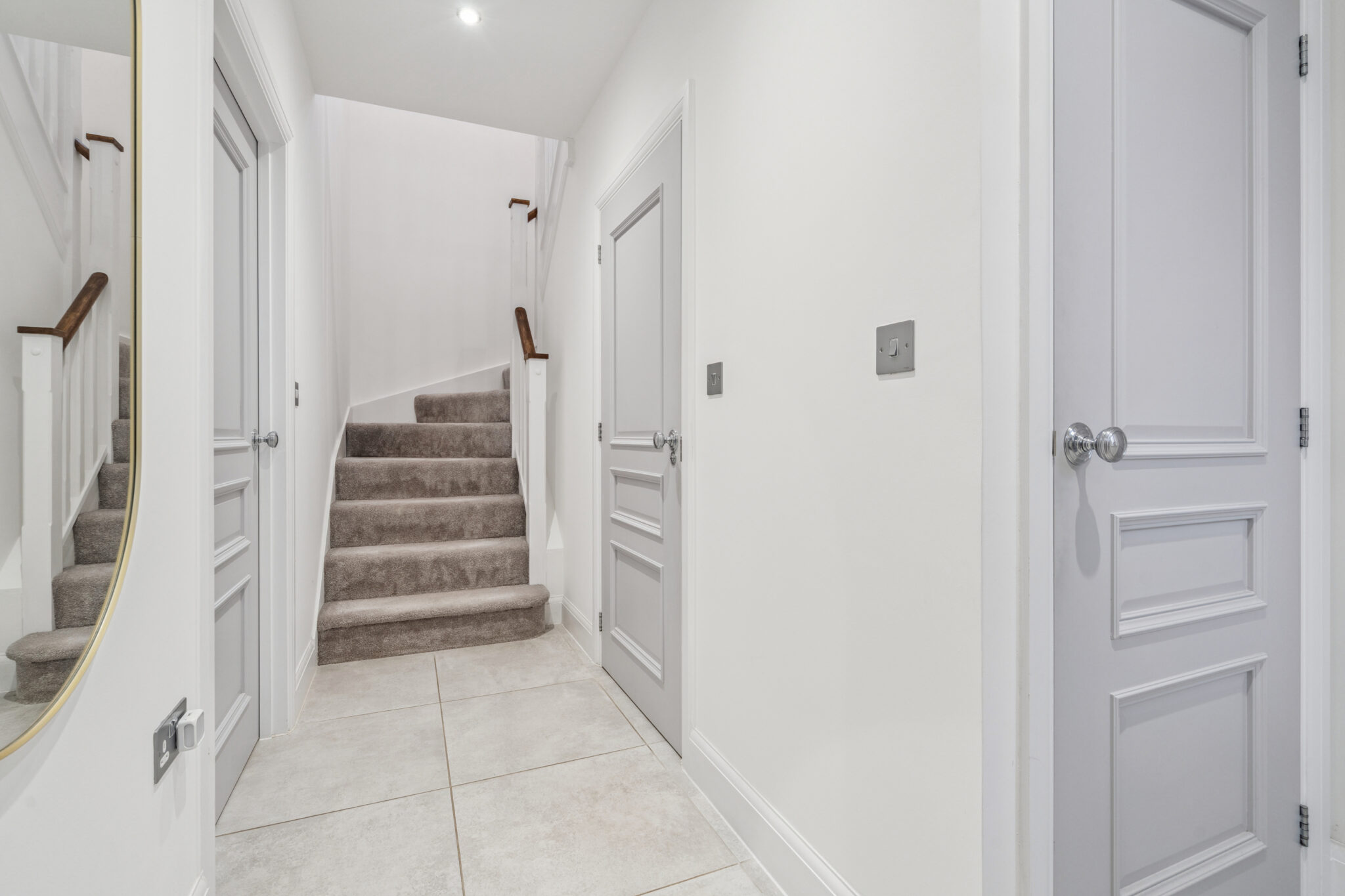 As you enter the property you are greeted by a spacious entrance hall with large cloakroom with WC and wash handbasin, access to all rooms and stairs to first floor, with the ground floor benefiting from fully tiled underfloor heating. The double aspected light and airy sitting room has double doors to the rear garden, the beautifully fitted kitchen/dining room feature Smeg integrated appliances, upgraded induction hob and additional fitted units and freezer. On the first floor are two good size double bedrooms with additional fitted wardrobes with a luxury en-suite shower room to the main bedroom and beautifully fitted main bathroom.