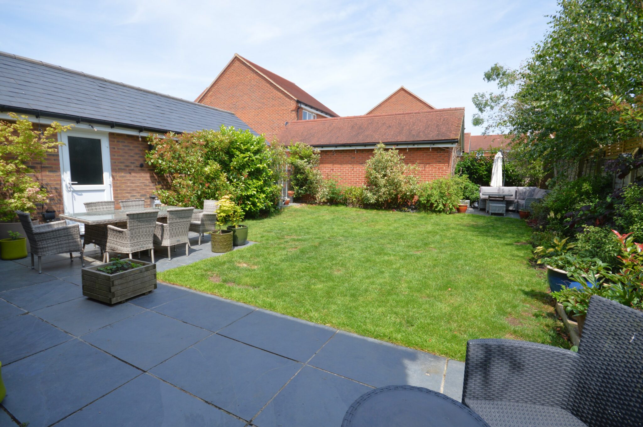 Outside, the current owners have meticulously designed a splendid outdoor space for relaxation and play. The expansive patio, extending across the width of the home and along the garage side, offers abundant room for al fresco dining, with double doors from the kitchen/diner creating a seamless indoor-outdoor flow, perfect for family BBQs. Lush flower and shrub beds and borders enhance the charm of the garden, while a quaint greenhouse sits at the rear of the garage. A courtesy door has been thoughtfully added to the garage for easy entry, complemented by a water tap and power points to facilitate outdoor activities. At the front, a well-manicured lawn bordered by a Laurel Hedge adds a touch of greenery and kerb appeal, completing the picture of a truly inviting home with a delightful outdoor haven awaiting your enjoyment.