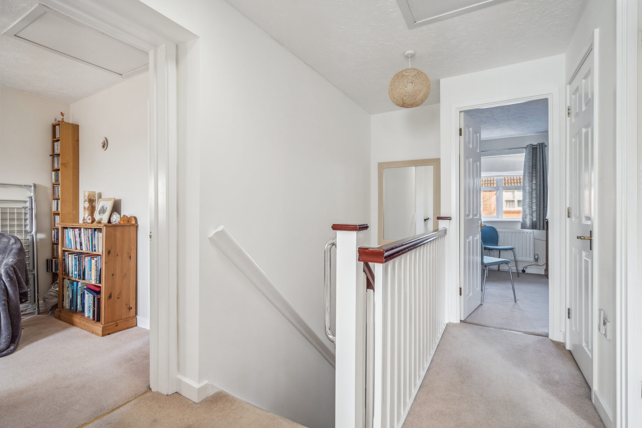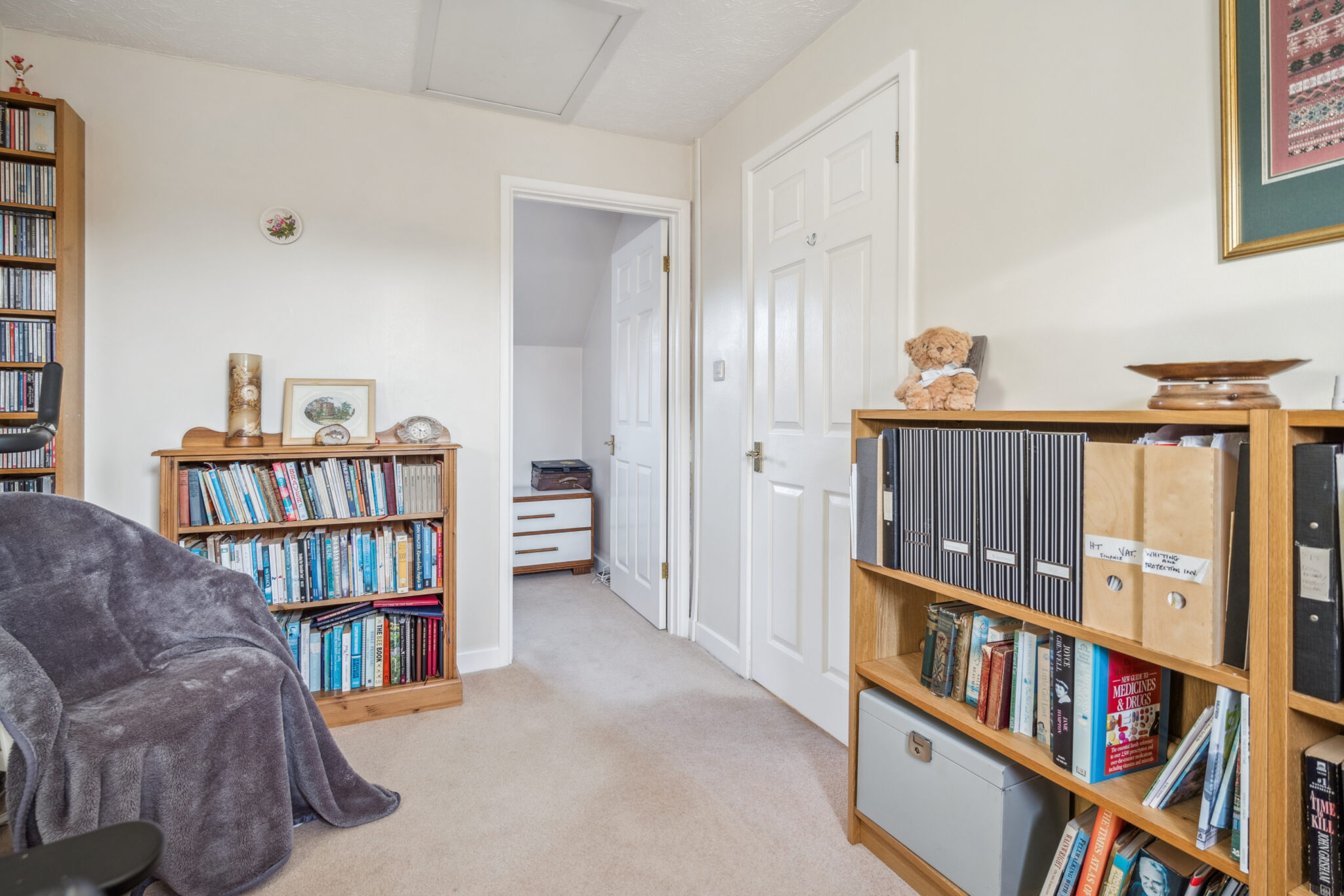 To the first floor, there are three bedrooms, most notably the principal bedroom that enjoys A fantastic floor space with an extensive range of fitted wardrobes and an en-suite shower room. The two further bedrooms are both good in size, with the third bedroom featuring a separate office space off of it. The family bathroom completes the internal accommodation.
