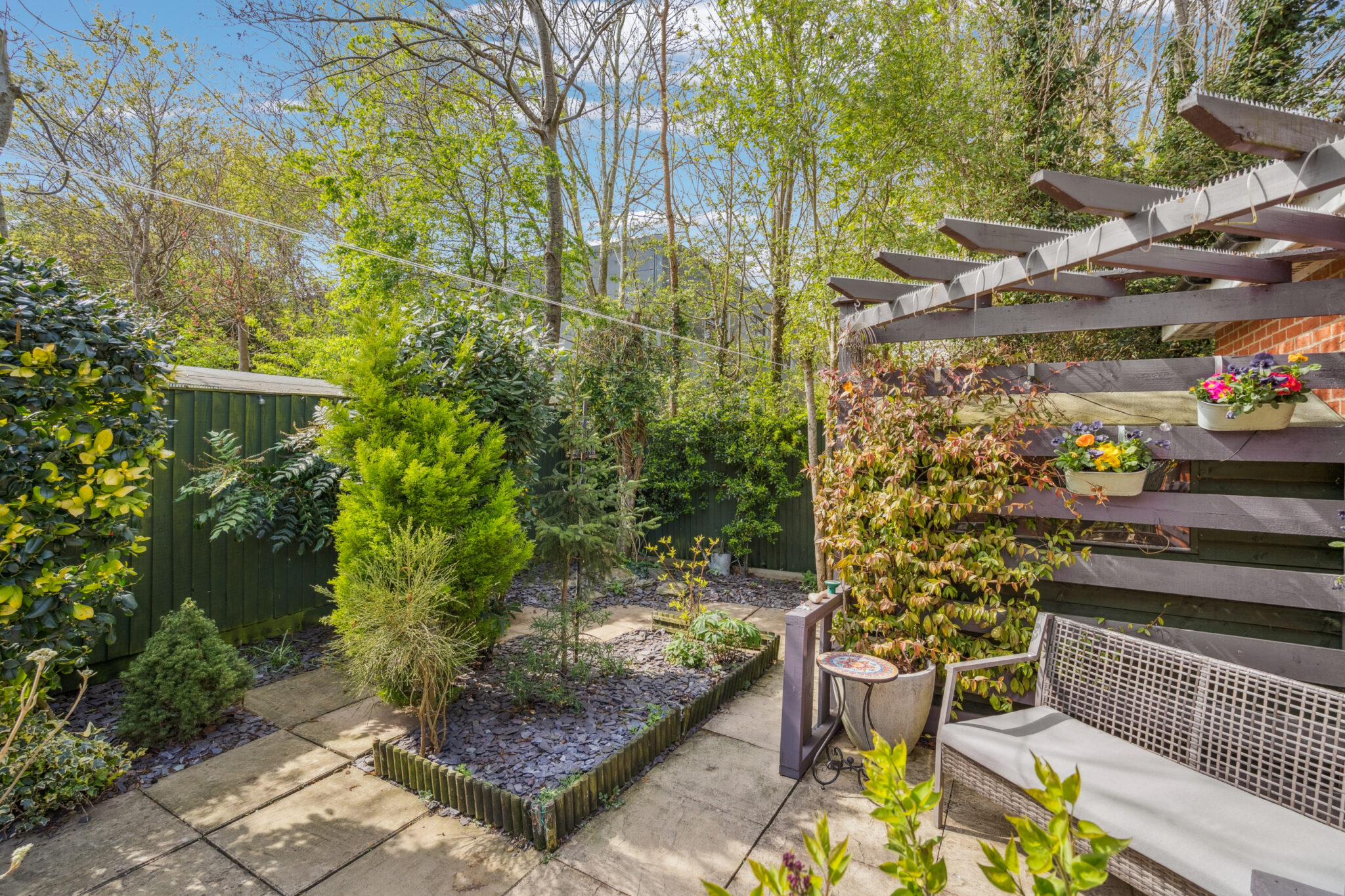 To the front, the property offers off street parking for two vehicles and a garage whilst to the rear, the peaceful garden enjoys a sunny Westerly aspect and features a range of trees and planted areas.